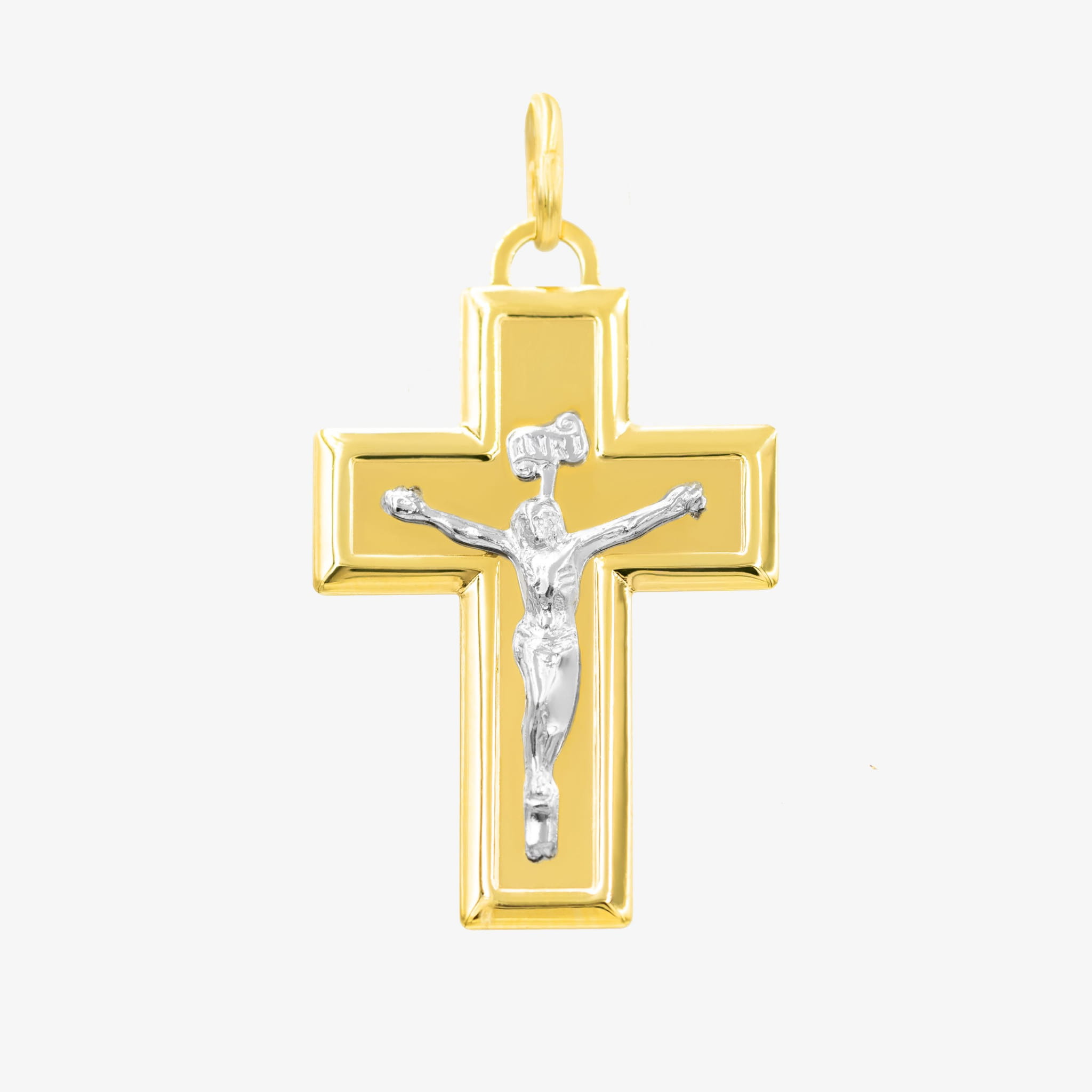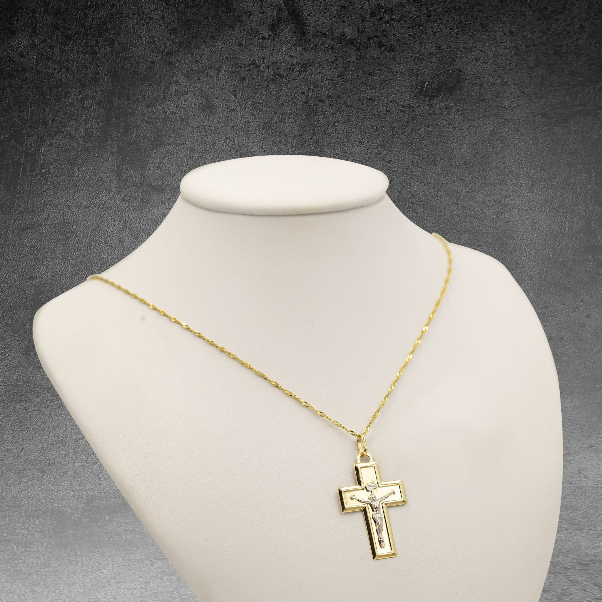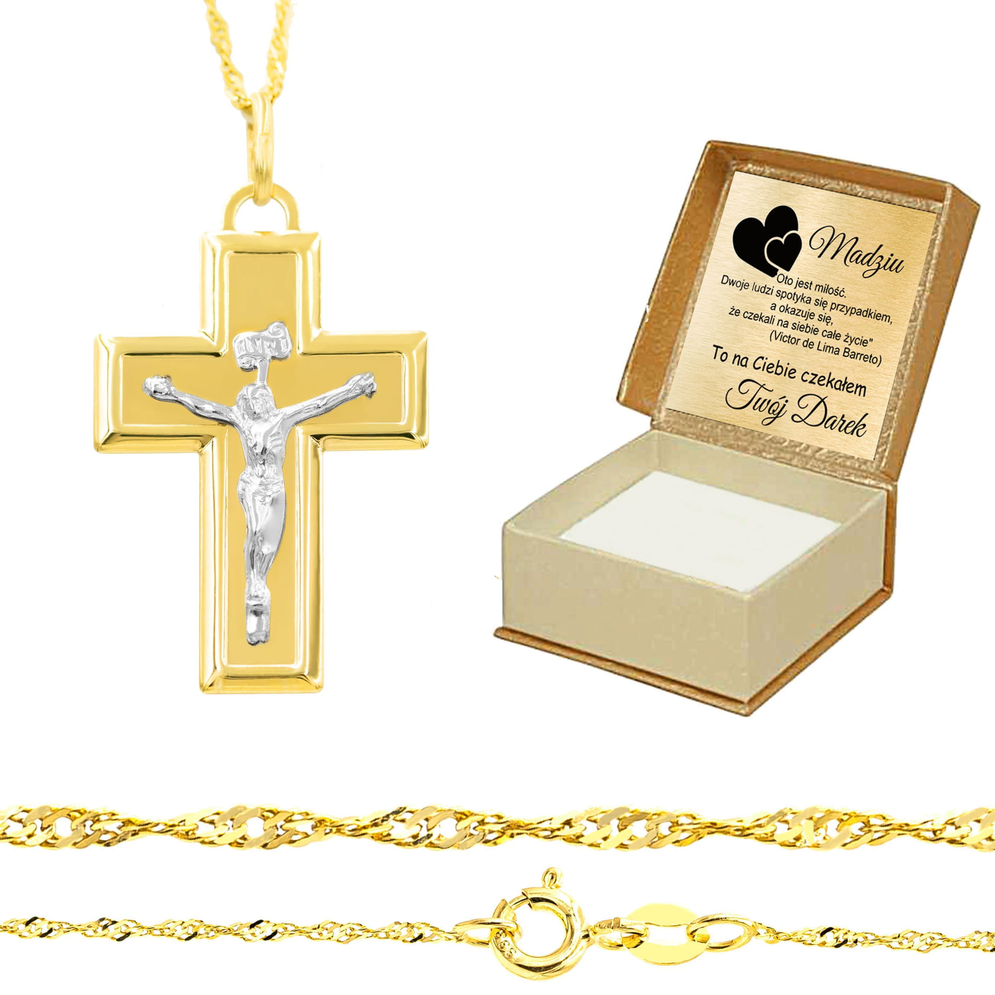Złoty krzyżyk białe żółte złoto Jezus Chrystus próba 585