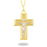 Złoty krzyżyk z osadzonym Panem Jezusem Chrystusem wykonanym z białego złota. Podarowany dziecku w dniu Pierwszej Komunii Świętej przez rodziców chrzestnych lub dziadków na pewno spowoduje radość na twarzy . Każdy wzór posiada metkę jubilerską. Opakowanie GRATIS.