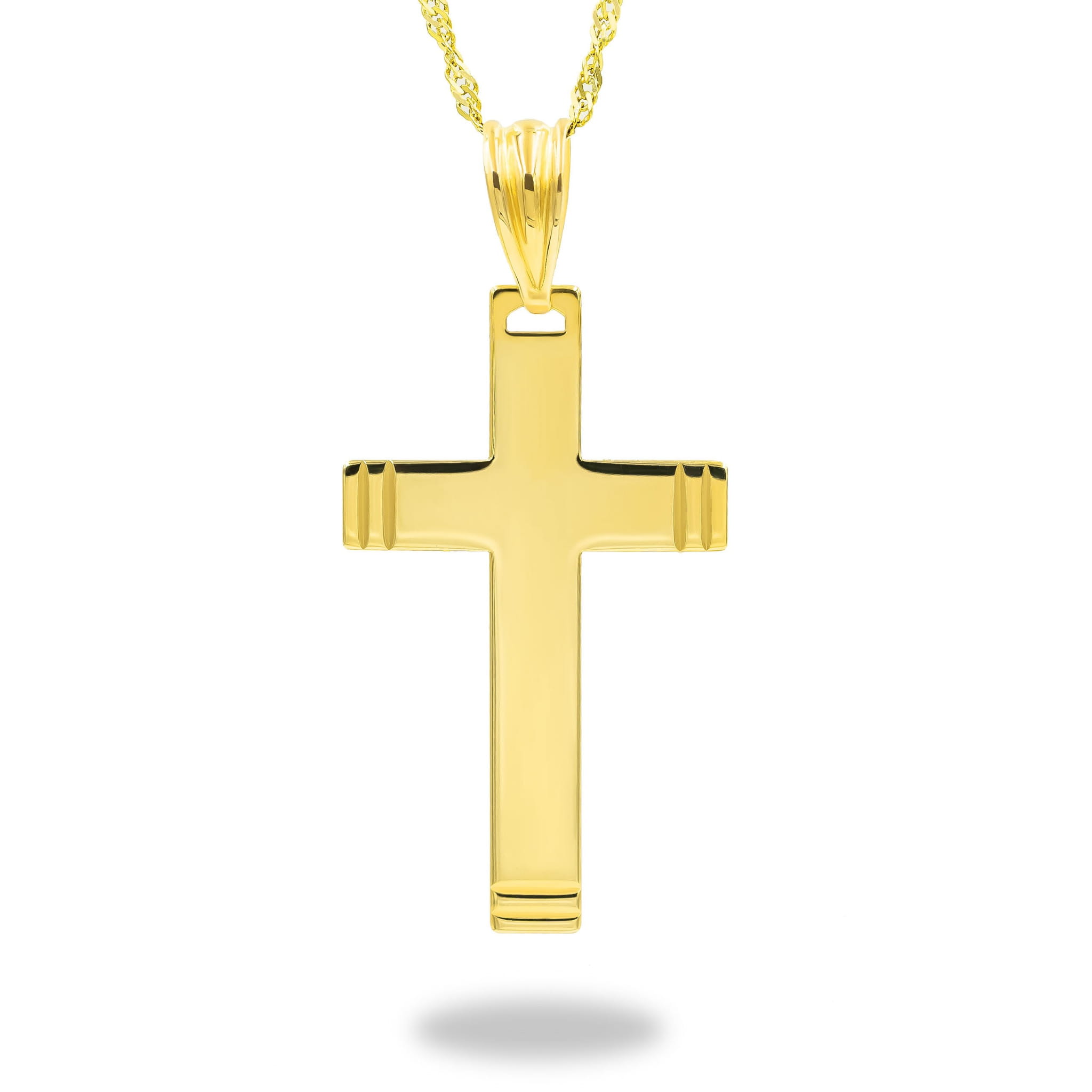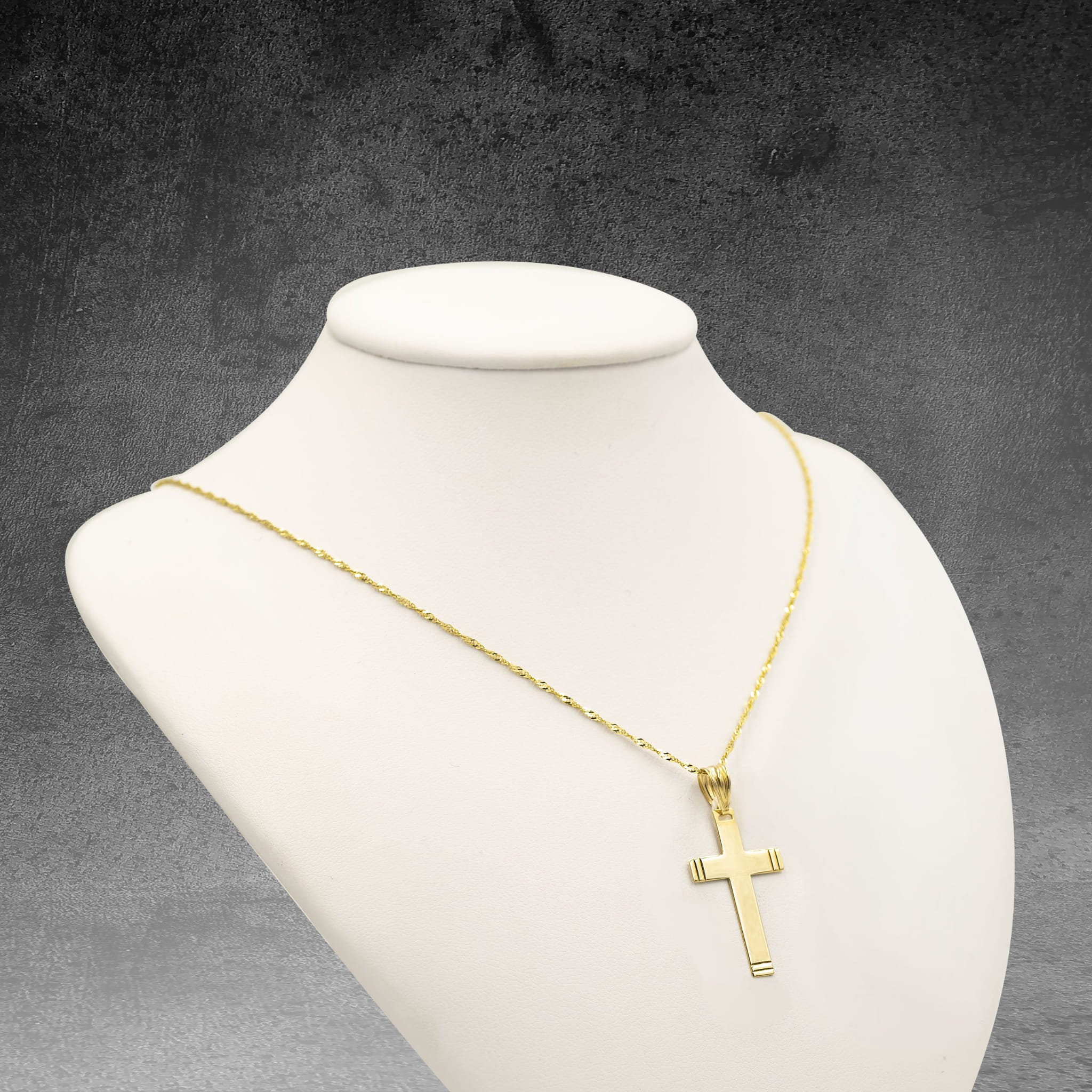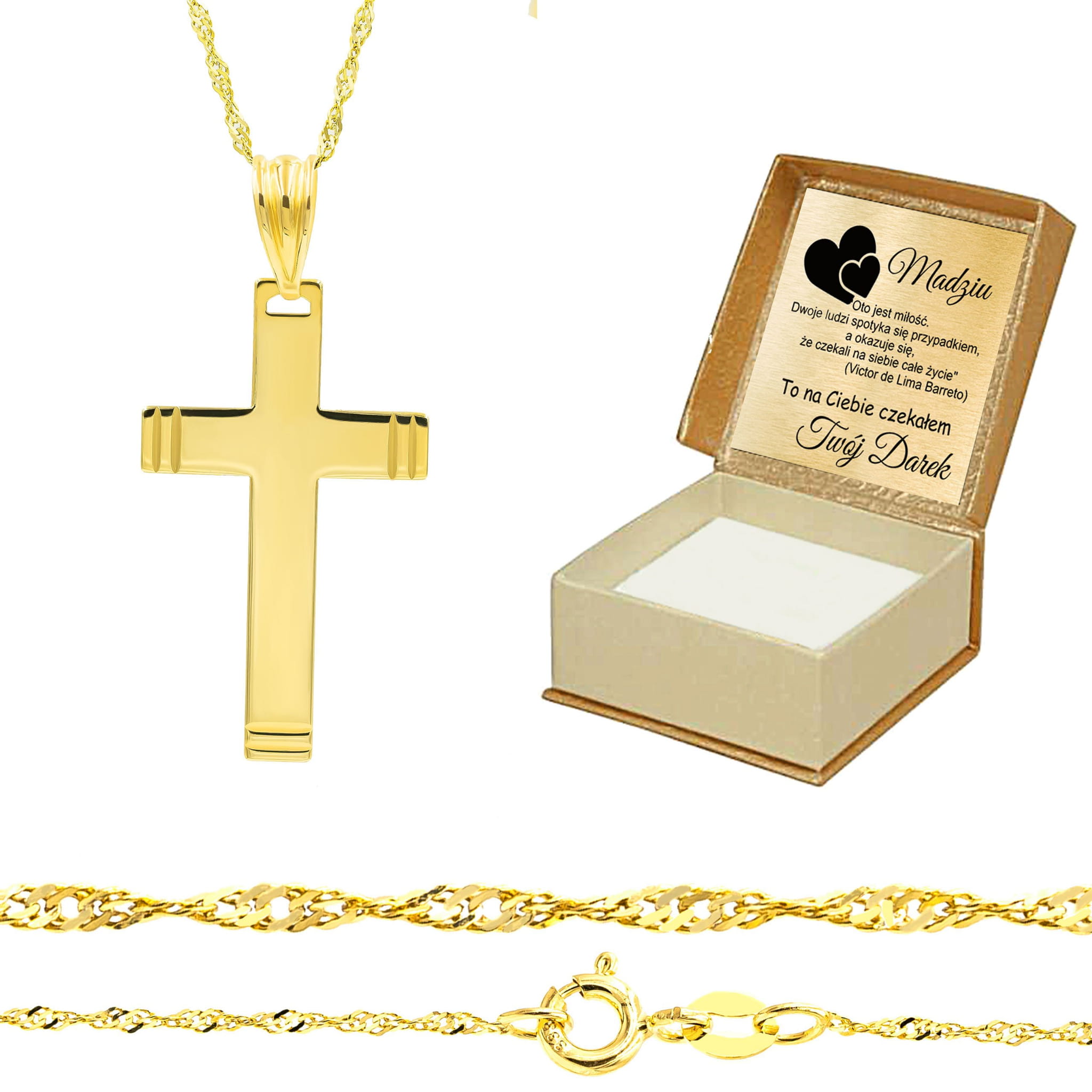 Złoty krzyżyk o prostym delikatnym wzorze. Podarowany dziecku w dniu Pierwszej Komunii Świętej przez rodziców chrzestnych lub dziadków na pewno spowoduje radość. Każdy wzór posiada metkę jubilerską. Opakowanie GRATIS.