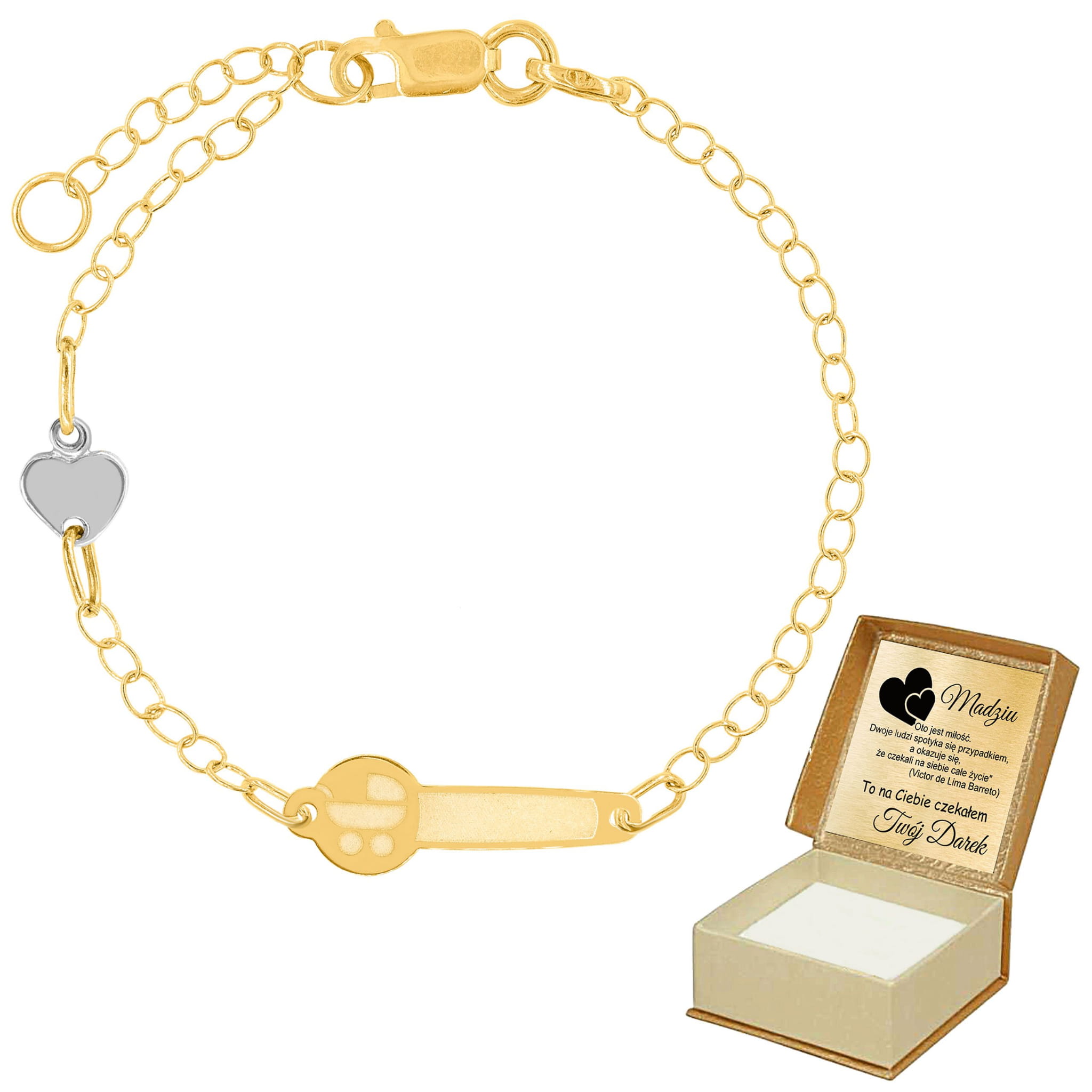 Złota Bransoletka Dziecięca z Motywem Serca i Wózeczka