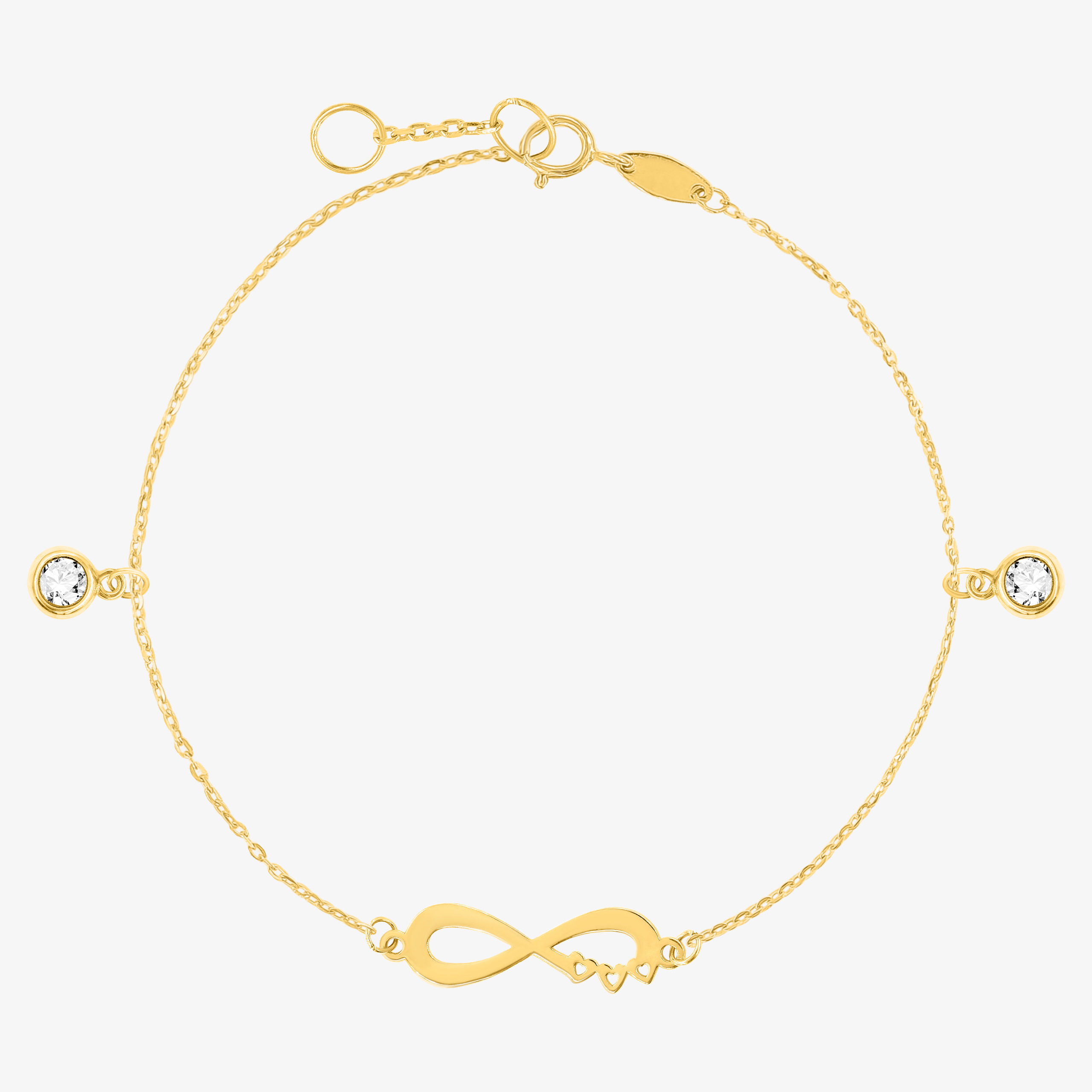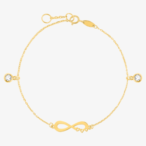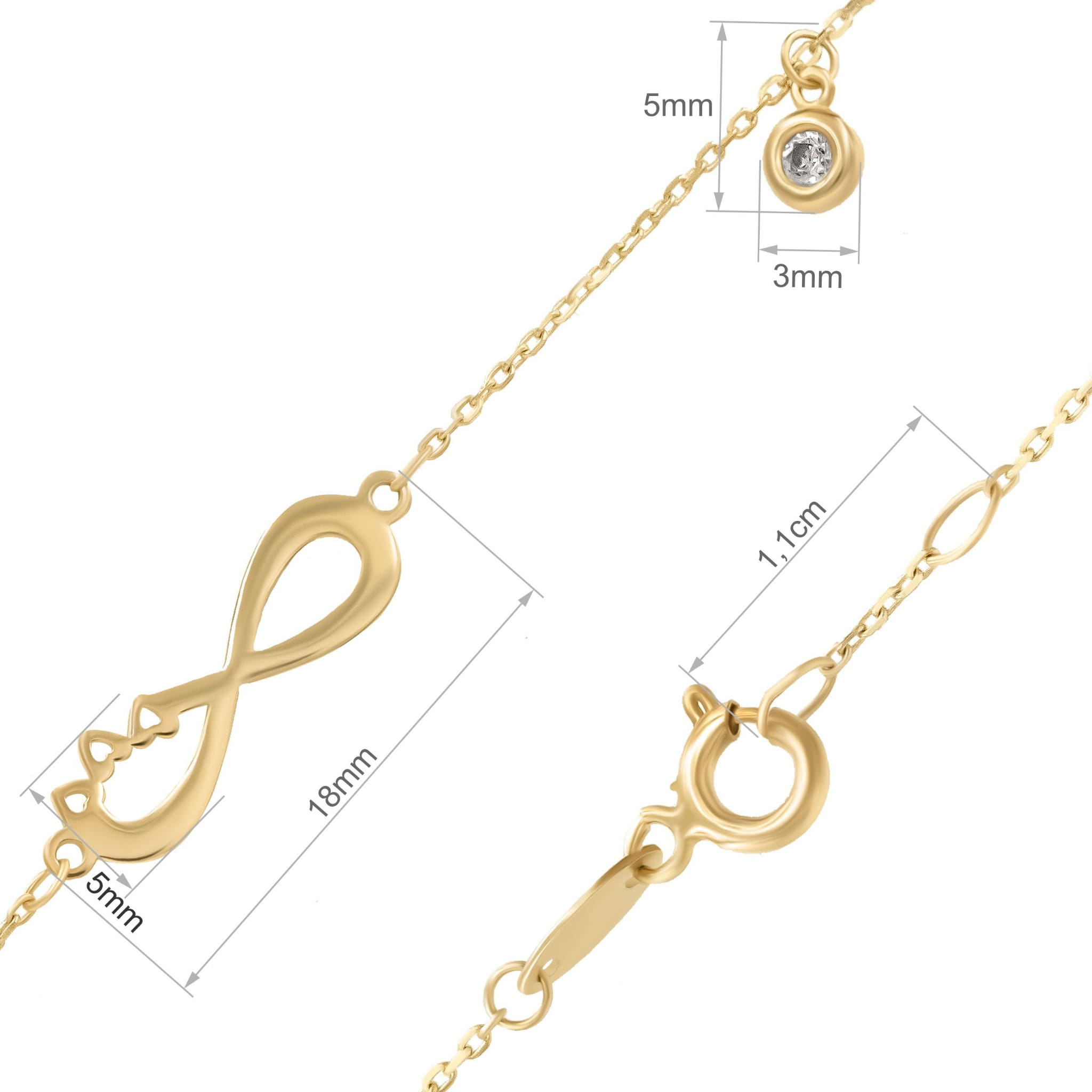 Złota Bransoletka ze Znakiem Nieskończoności, Kuleczkami z Osadzonymi Białymi Cyrkoniami 0.333