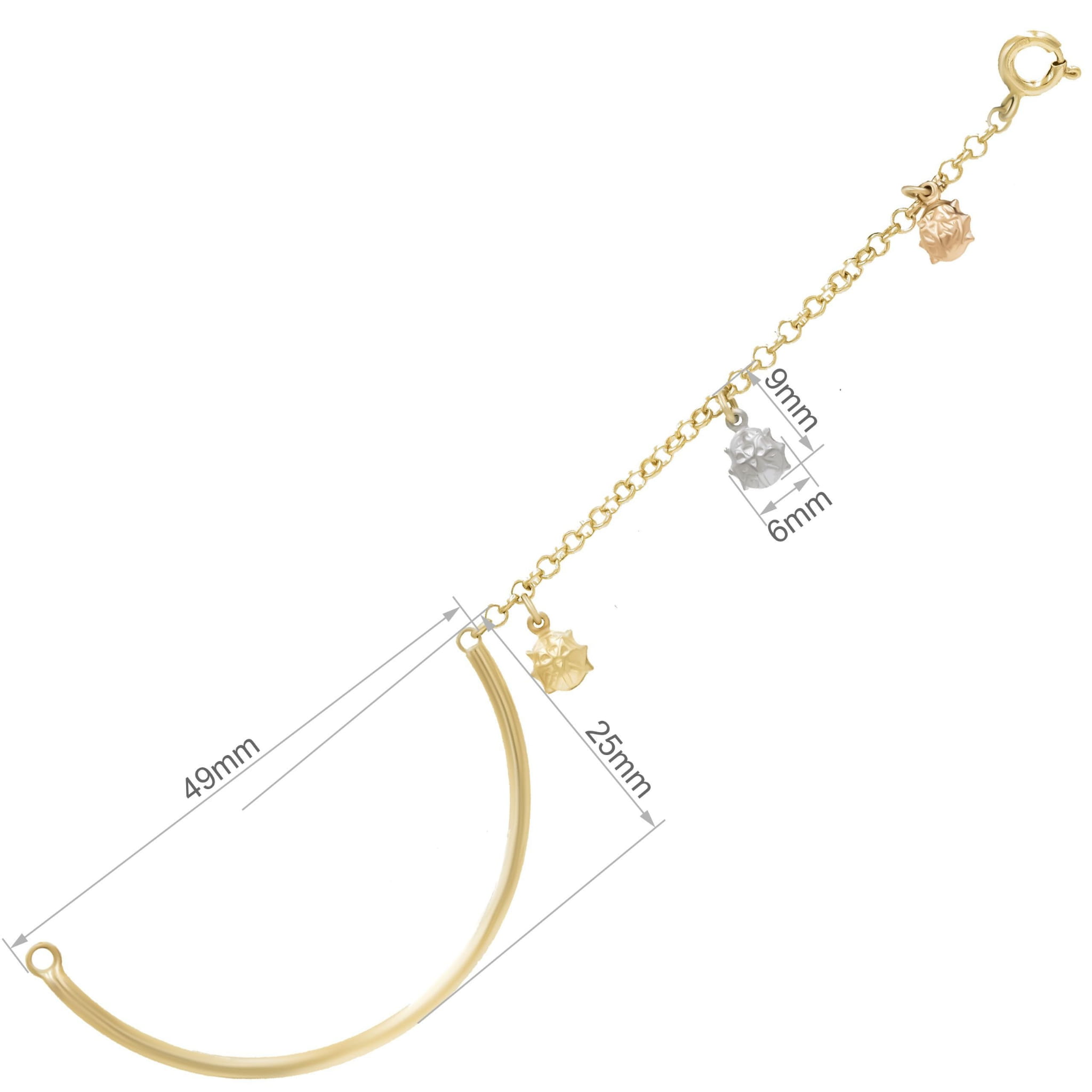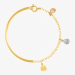 Złota bransoletka dziecięca z biedronkami w trzech kolorach została wykonana z najwyższej jakości złota, które jest trwałe i delikatne dla dziecięcej skóry. Sztywna konstrukcja połączona z delikatnym łańcuszkiem zapewnia zarówno komfort noszenia, jak i bezpieczeństwo.