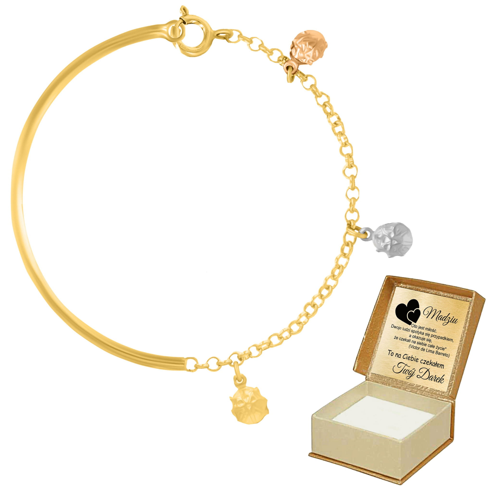 • Trójkolorowy design: Połączenie złota, srebra i różowego złota nadaje bransoletce wyjątkowego uroku i uniwersalnego charakteru.