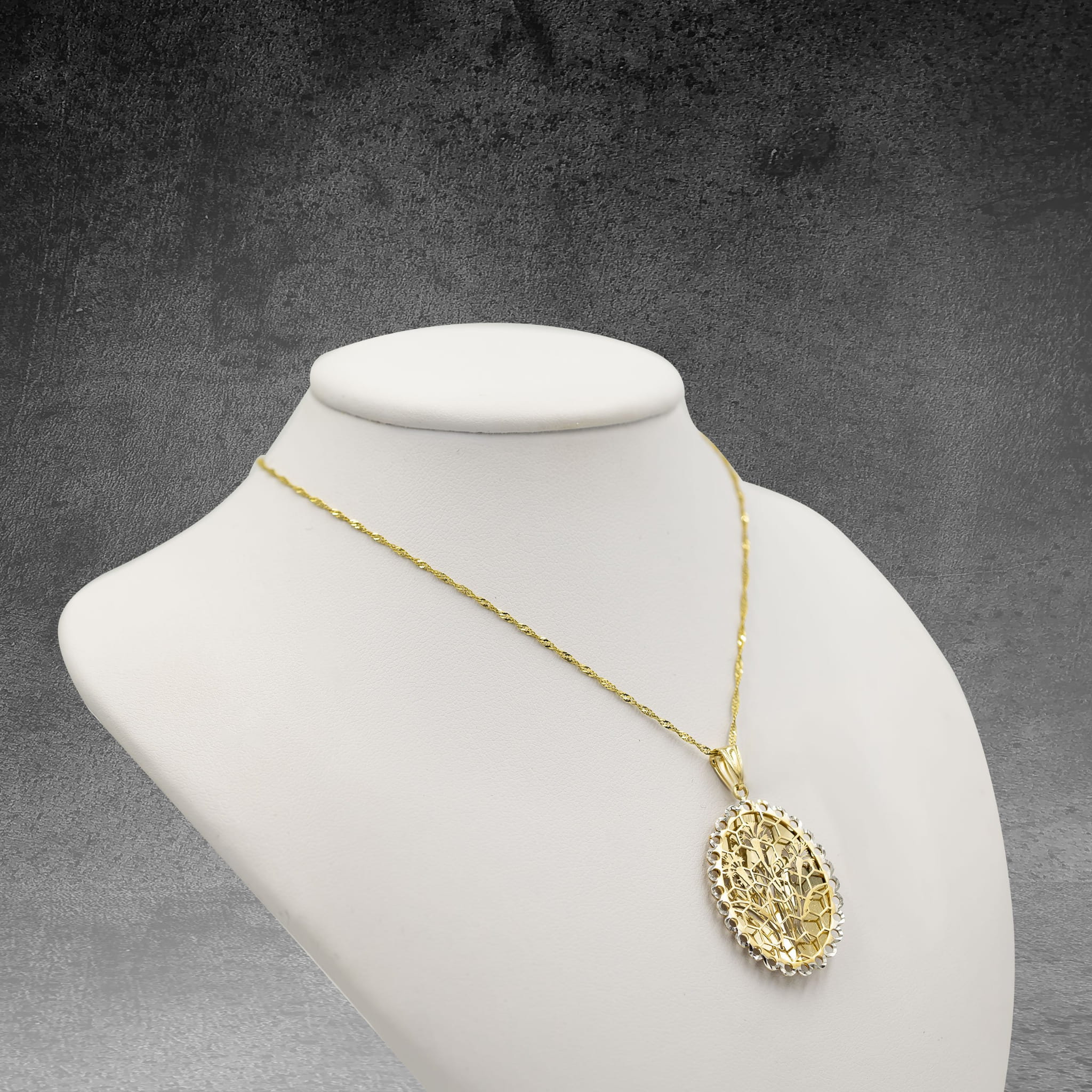 Złota zawieszka z dwustronnym zdobieniem