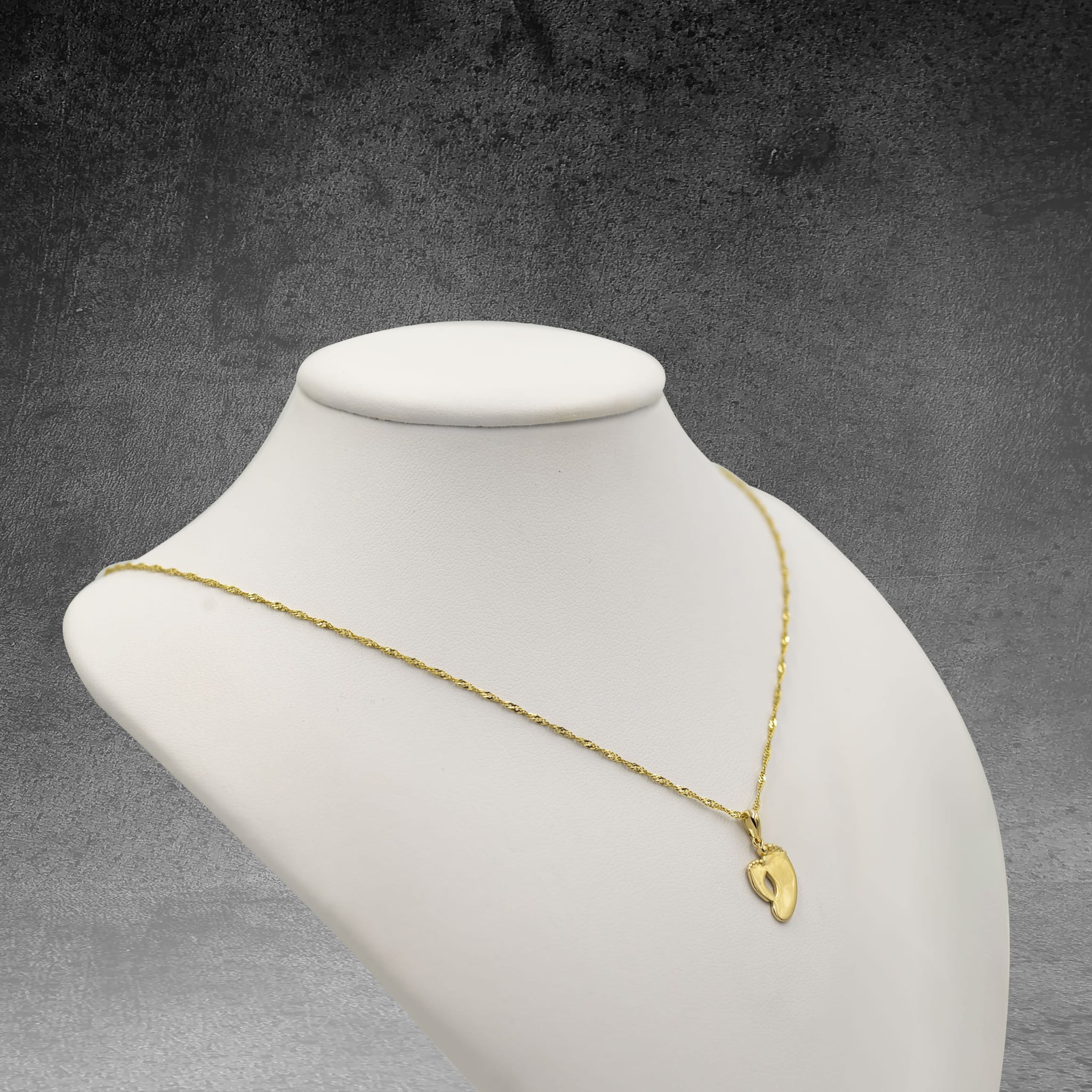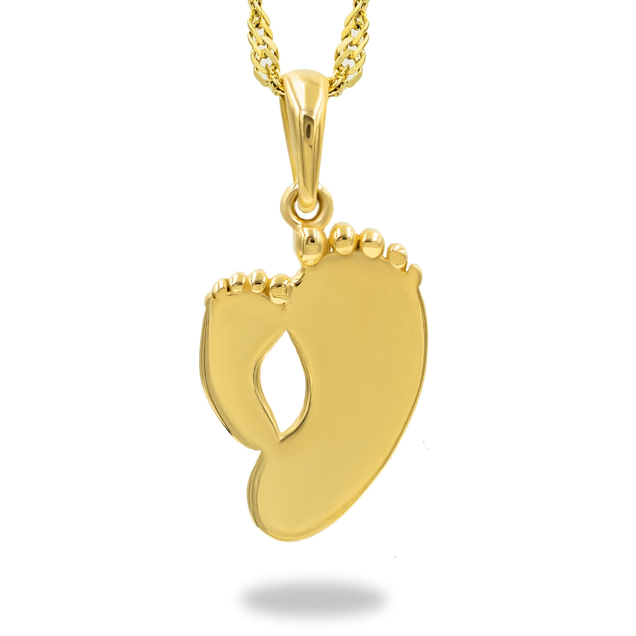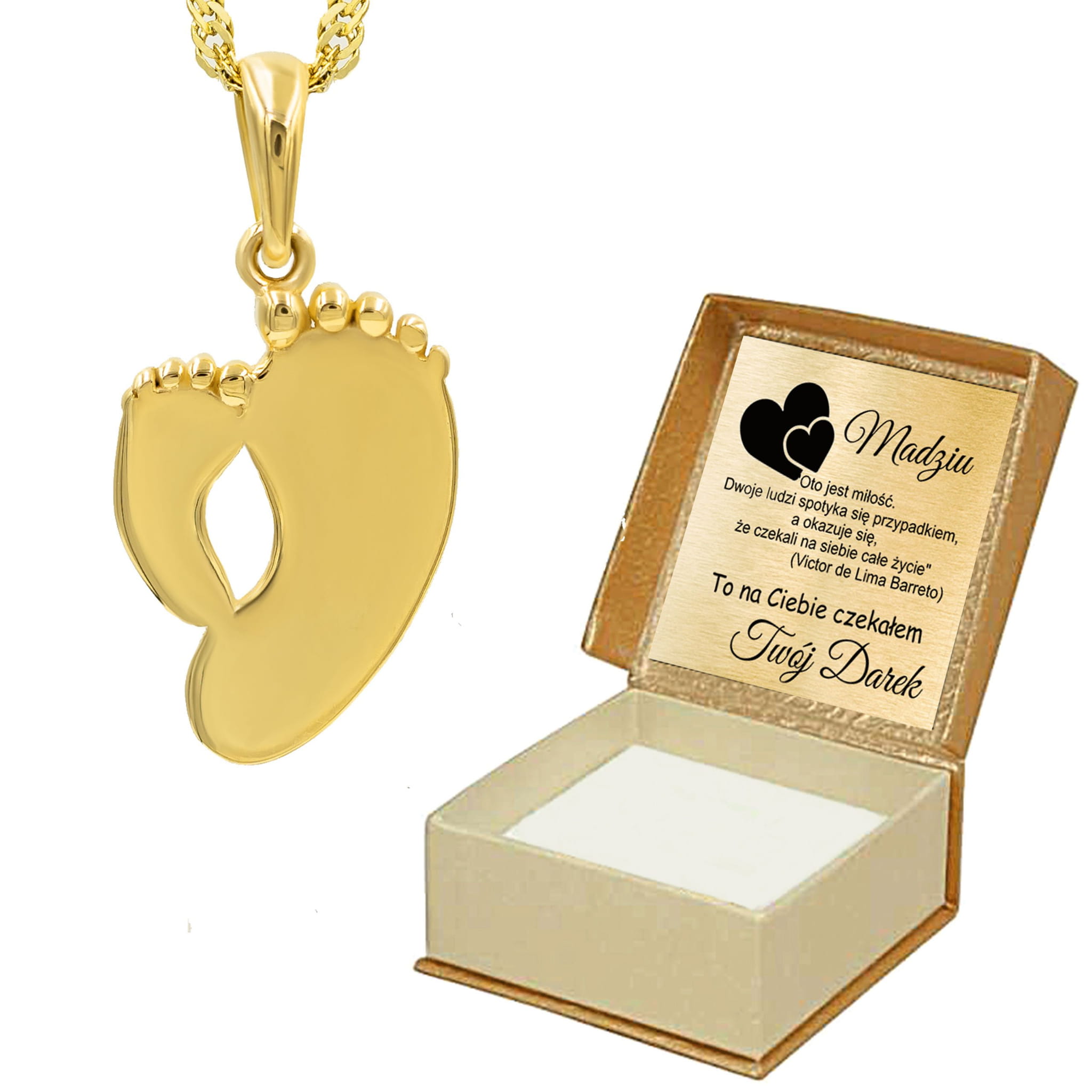 Złota zawieszka o niestandardowym kształcie, stópki. Cudowny prezent, który możemy wręczyć z okazji imienin, urodzin czy także rocznicy. Wręczony upominek na pewno spowoduje uśmiech na twarzy. Każdy wzór posiada metkę jubilerską. Opakowanie GRATIS.