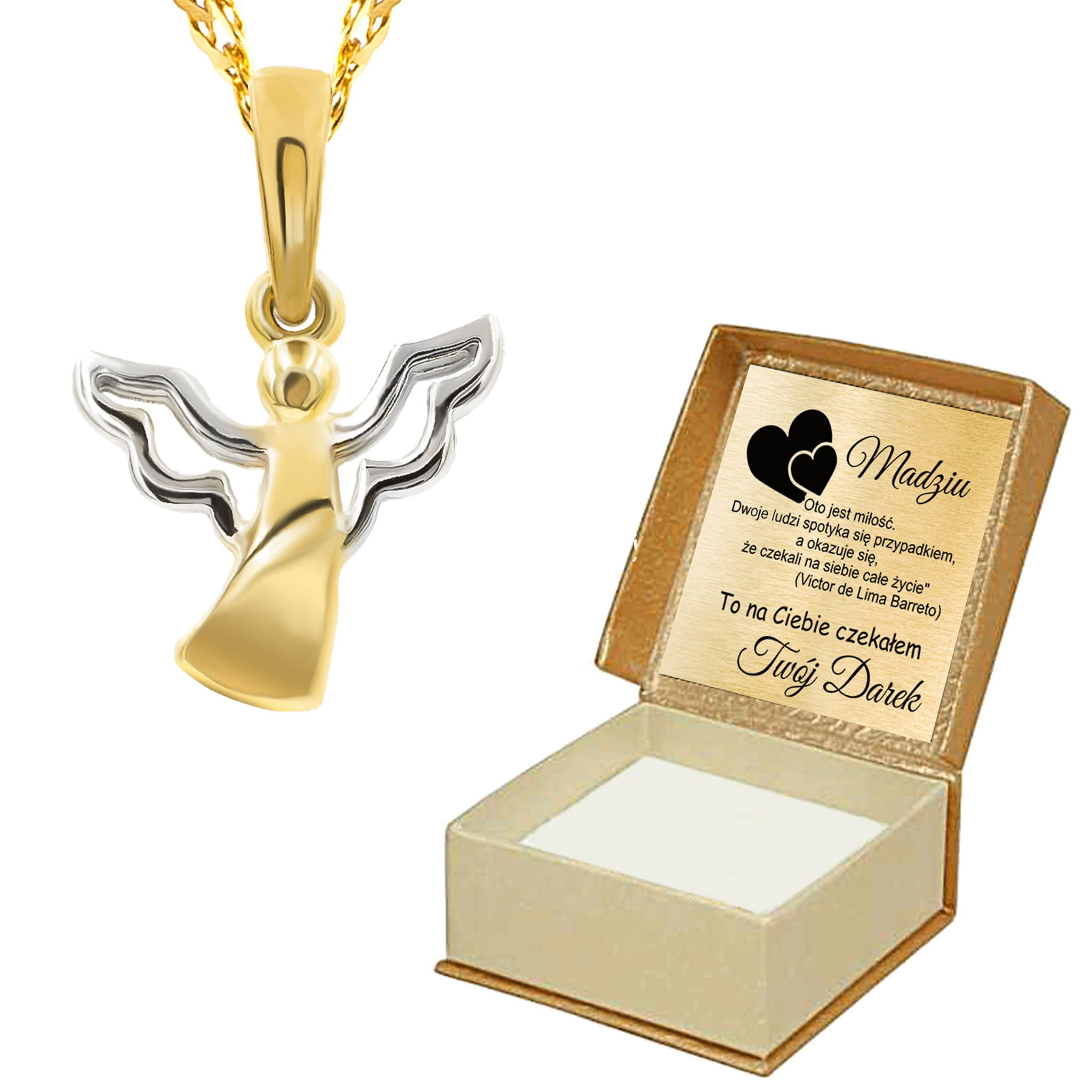 Złota zawieszka dwukolorowy aniołek