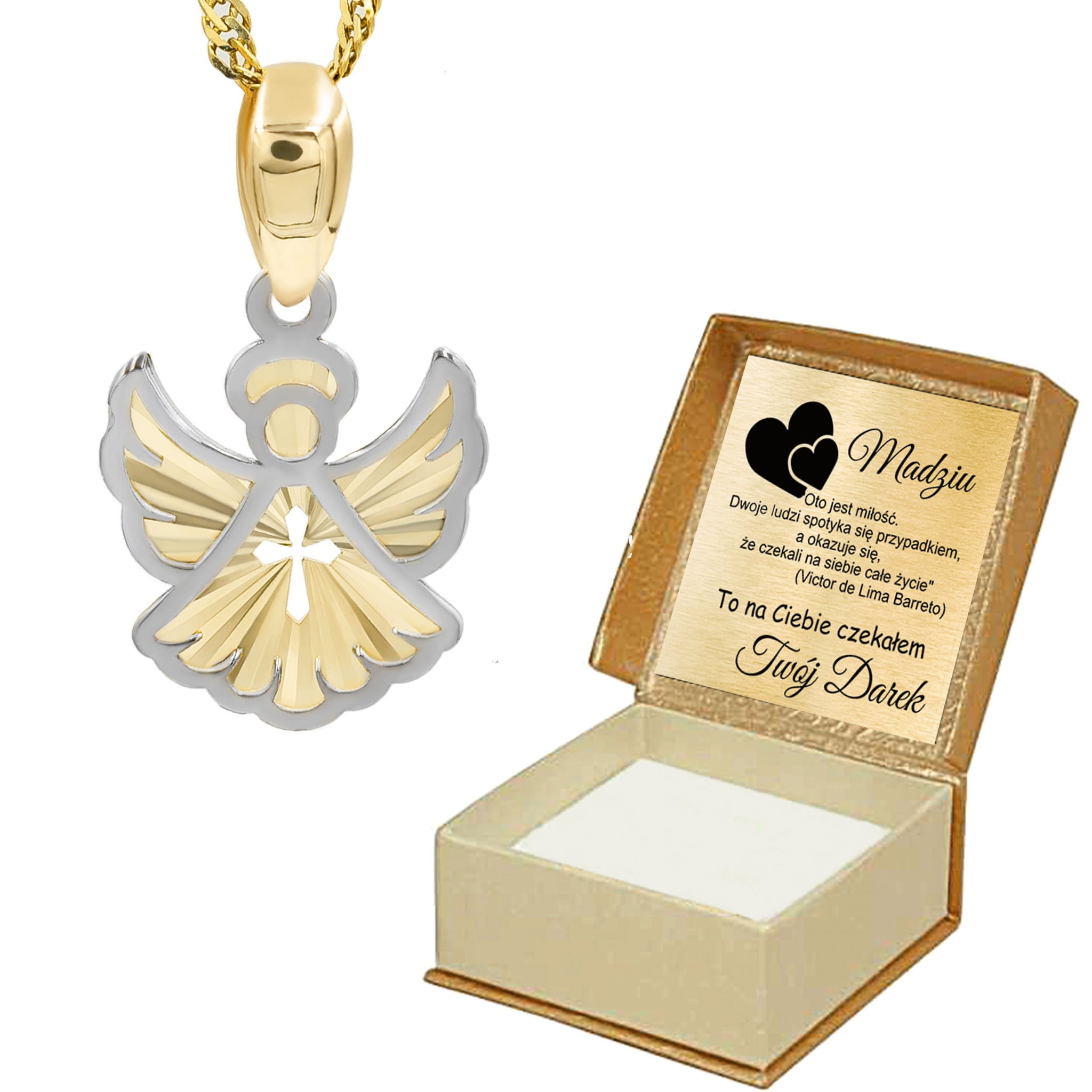 Złota zawieszka o oryginalnym kształcie z delikatnym zdobieniem. Cudowny prezent, który możemy wręczyć z okazji imienin, urodzin czy także rocznicy. Wręczony upominek na pewno spowoduje uśmiech na twarzy. Każdy wzór posiada metkę jubilerską. Opakowanie GRATIS.