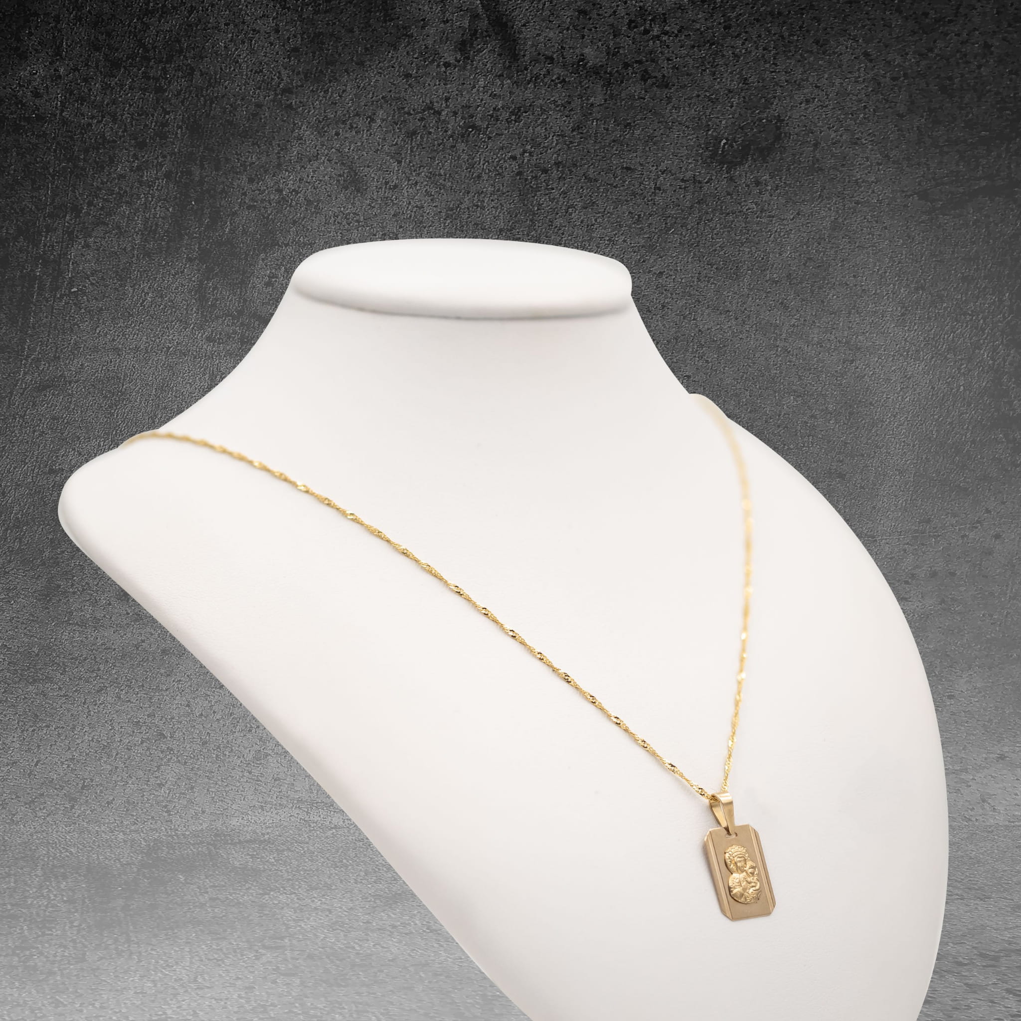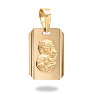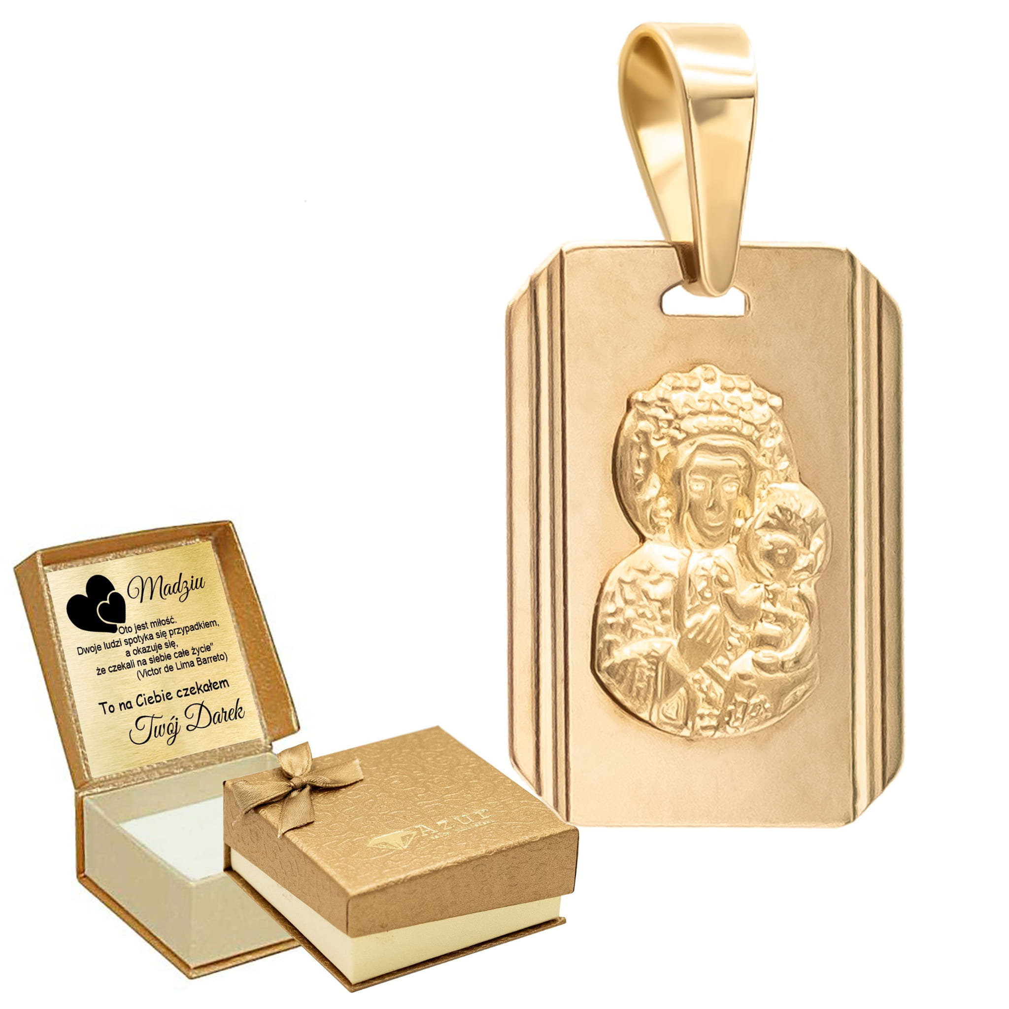 Złota delikatnie zdobiona zawieszka medalik z Matką Boską i Dzieciątkiem Jezus na blaszce. Jest to cudowny prezent, który możemy wręczyć z okazji Świąt, urodzin oraz Komunii Świętej. Wręczony upominek z pewnością wywoła wiele radości.