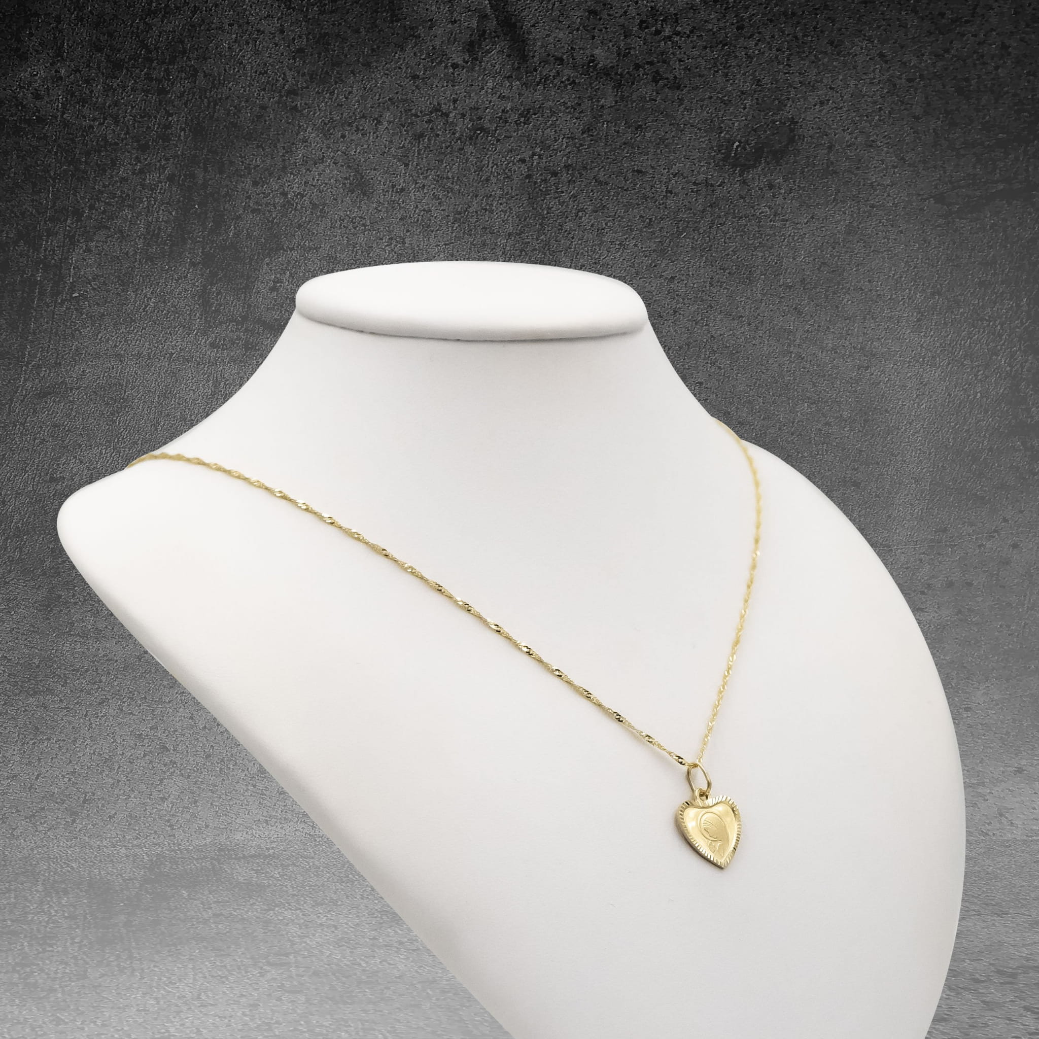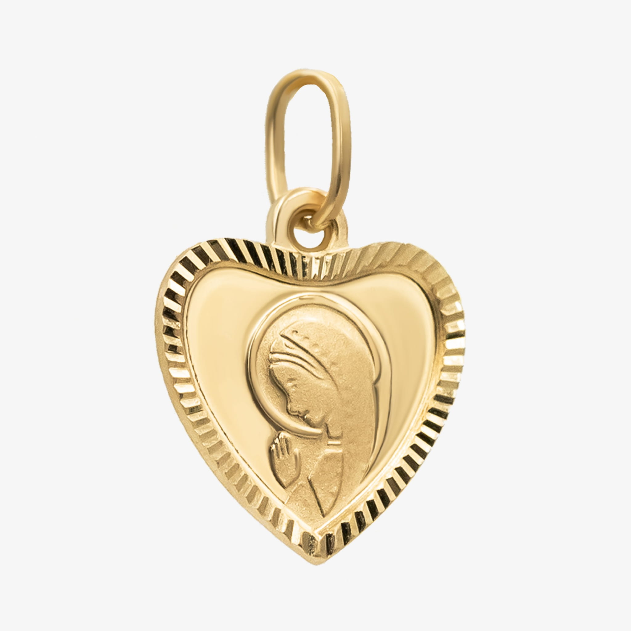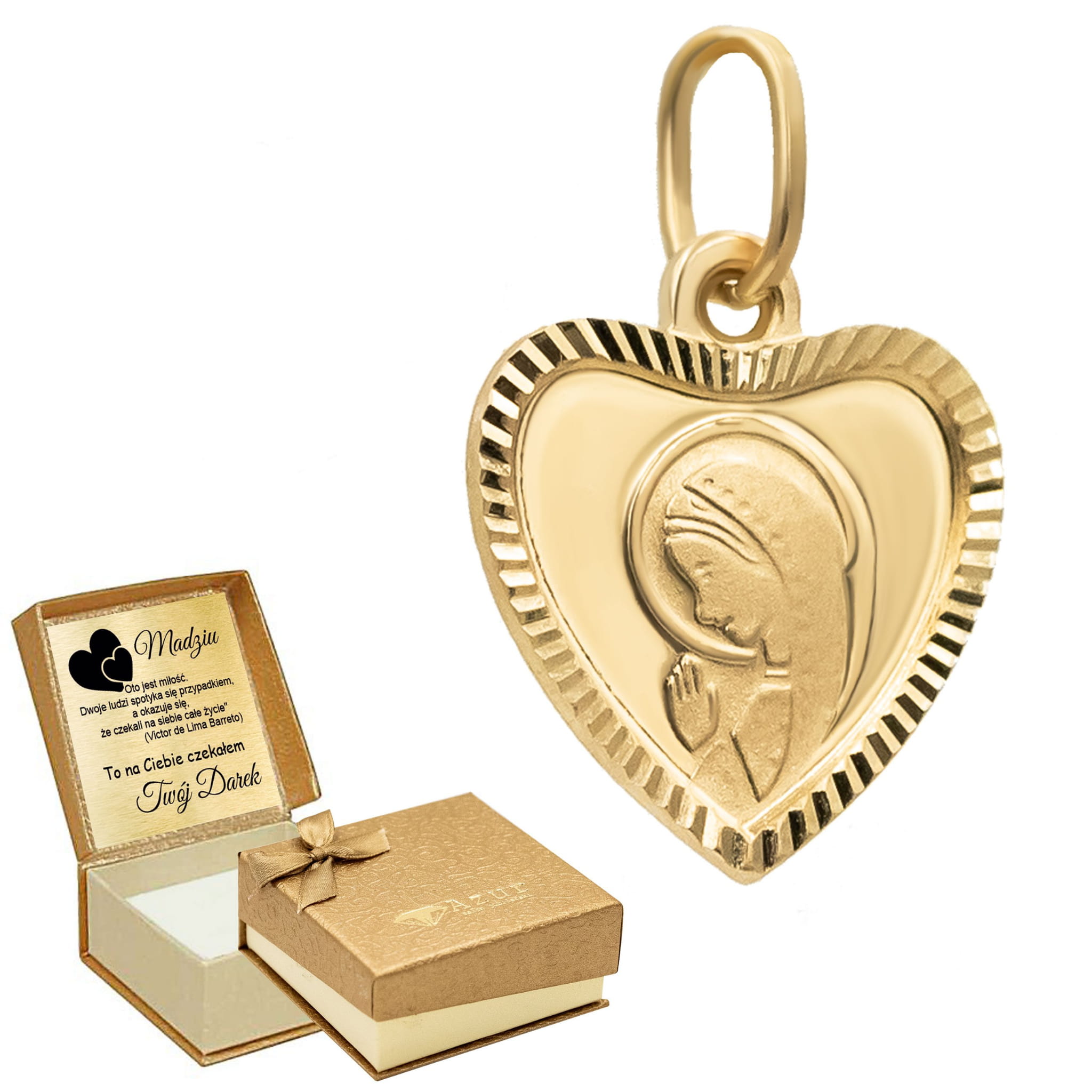 Złota zawieszka ozdobione serduszko z Matką Boską