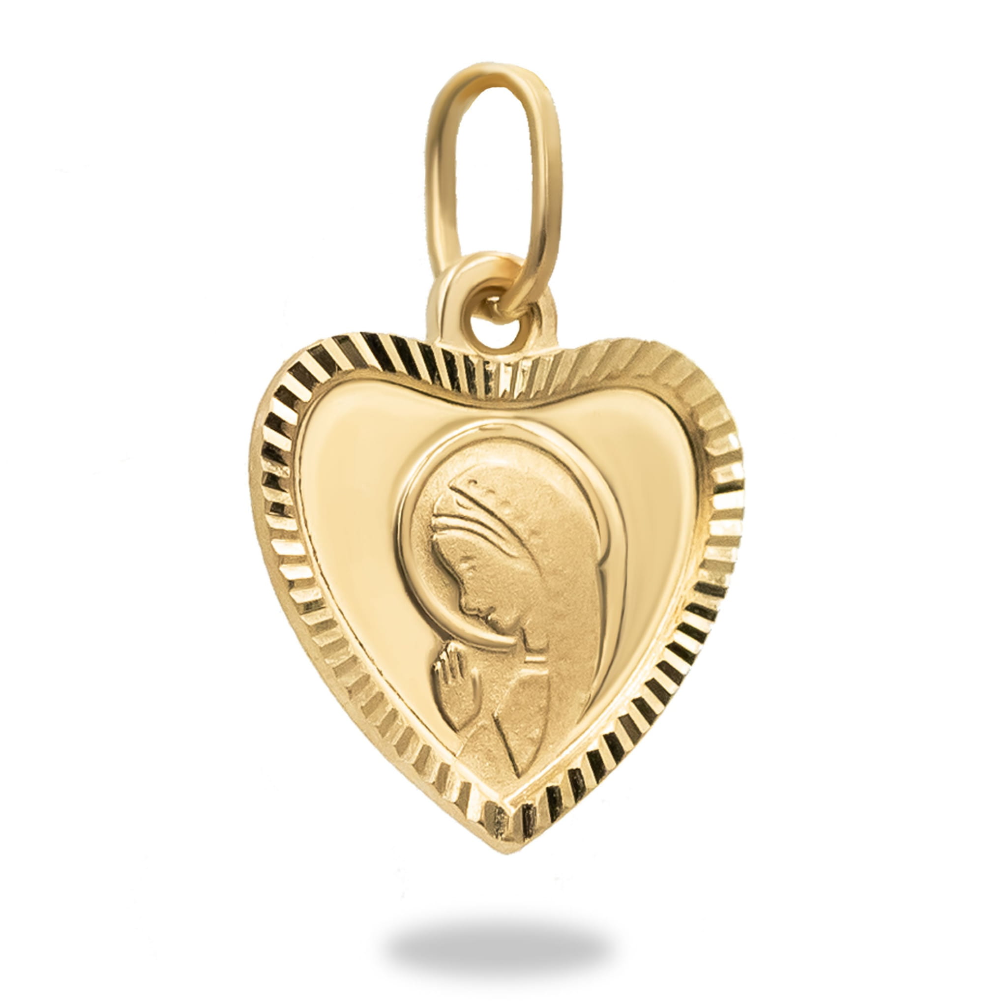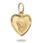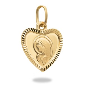 Złota, subtelna zawieszka w kształcie serduszka z modlącą się Matką Boską. Jest to cudowny prezent, który możemy wręczyć z okazji Świąt, urodzin oraz Komunii Świętej. Wręczony upominek z pewnością wywoła wiele radości.