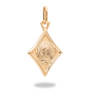Złota zawieszka w niestandardowym kształcie medalik z Matką Boską i Dzieciątkiem Jezus 0.585