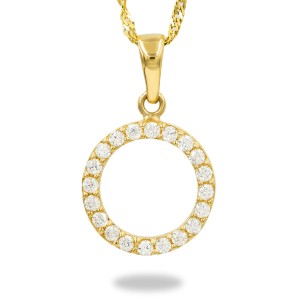 Złota okrągła zawieszka z cyrkoniami. Cudowny prezent, który możemy wręczyć z okazji imienin, urodzin czy także rocznicy. Wręczony upominek na pewno spowoduje uśmiech na twarzy. Każdy wzór posiada metkę jubilerską. Opakowanie GRATIS.
