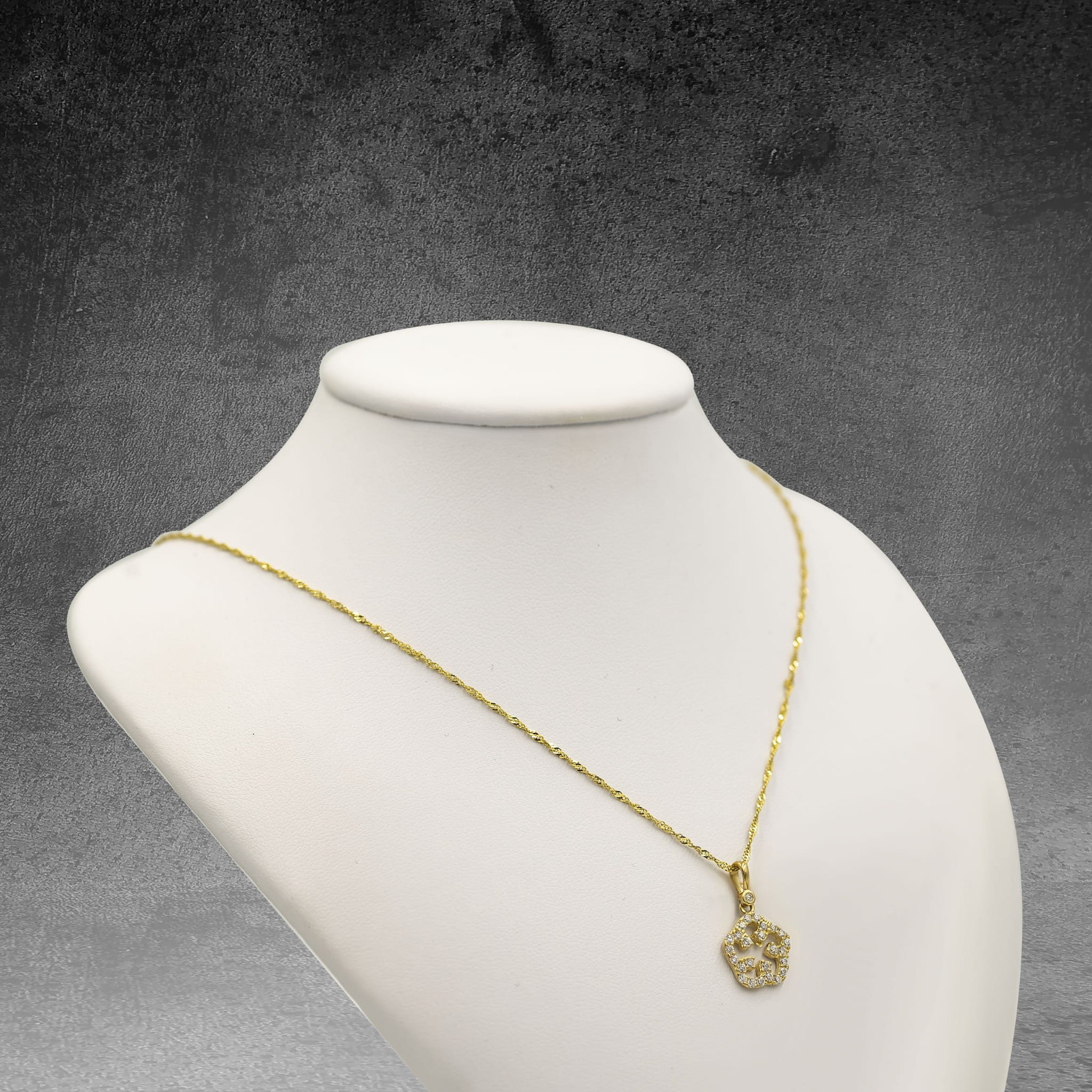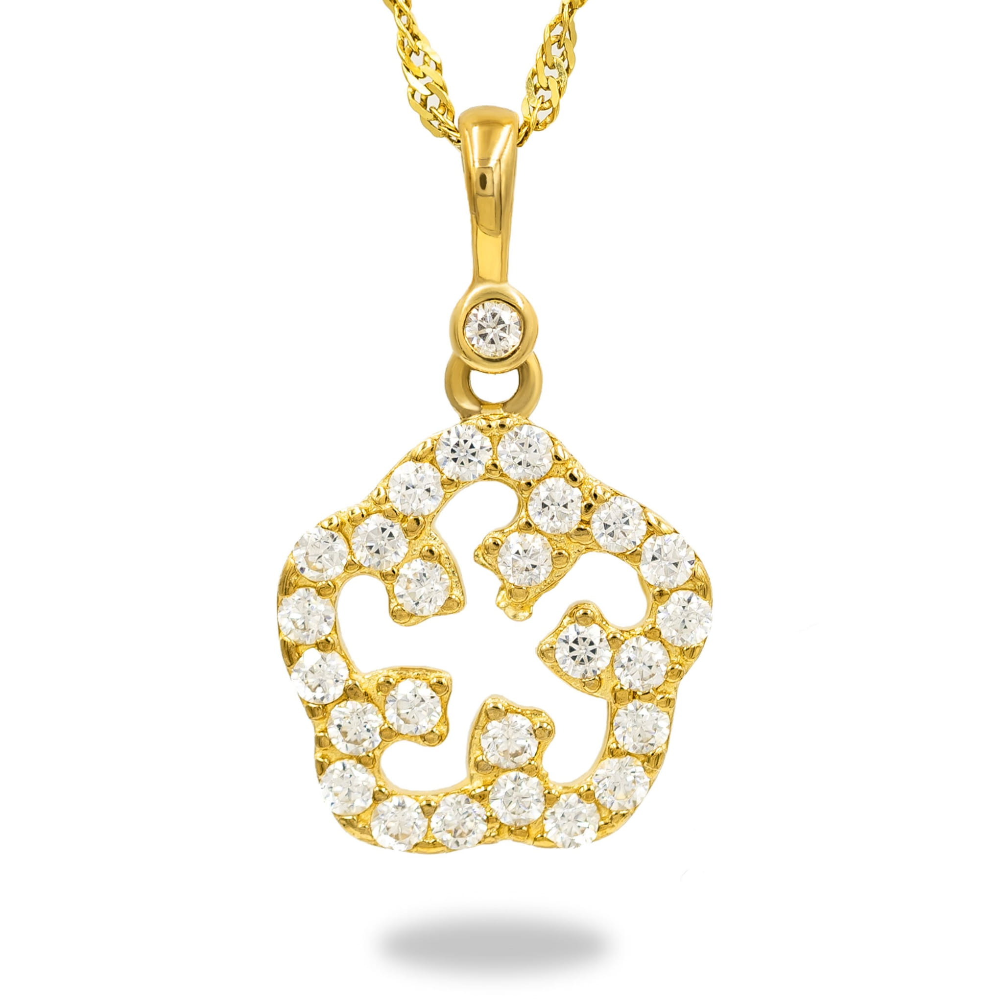 Złota zawieszka o niestandardowym kształcie z cyrkoniami. Cudowny prezent, który możemy wręczyć z okazji imienin, urodzin czy także rocznicy. Wręczony upominek na pewno spowoduje uśmiech na twarzy. Każdy wzór posiada metkę jubilerską. Opakowanie GRATIS.