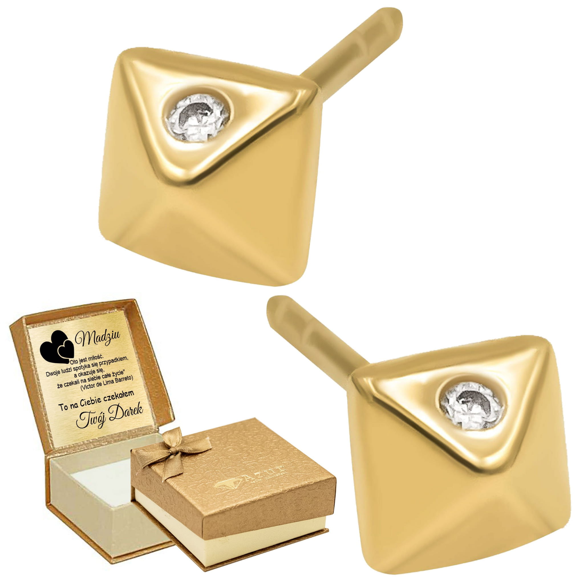 Pozłacane srebrne kolczyki z białymi cyrkoniami – biżuteria z grawerem
