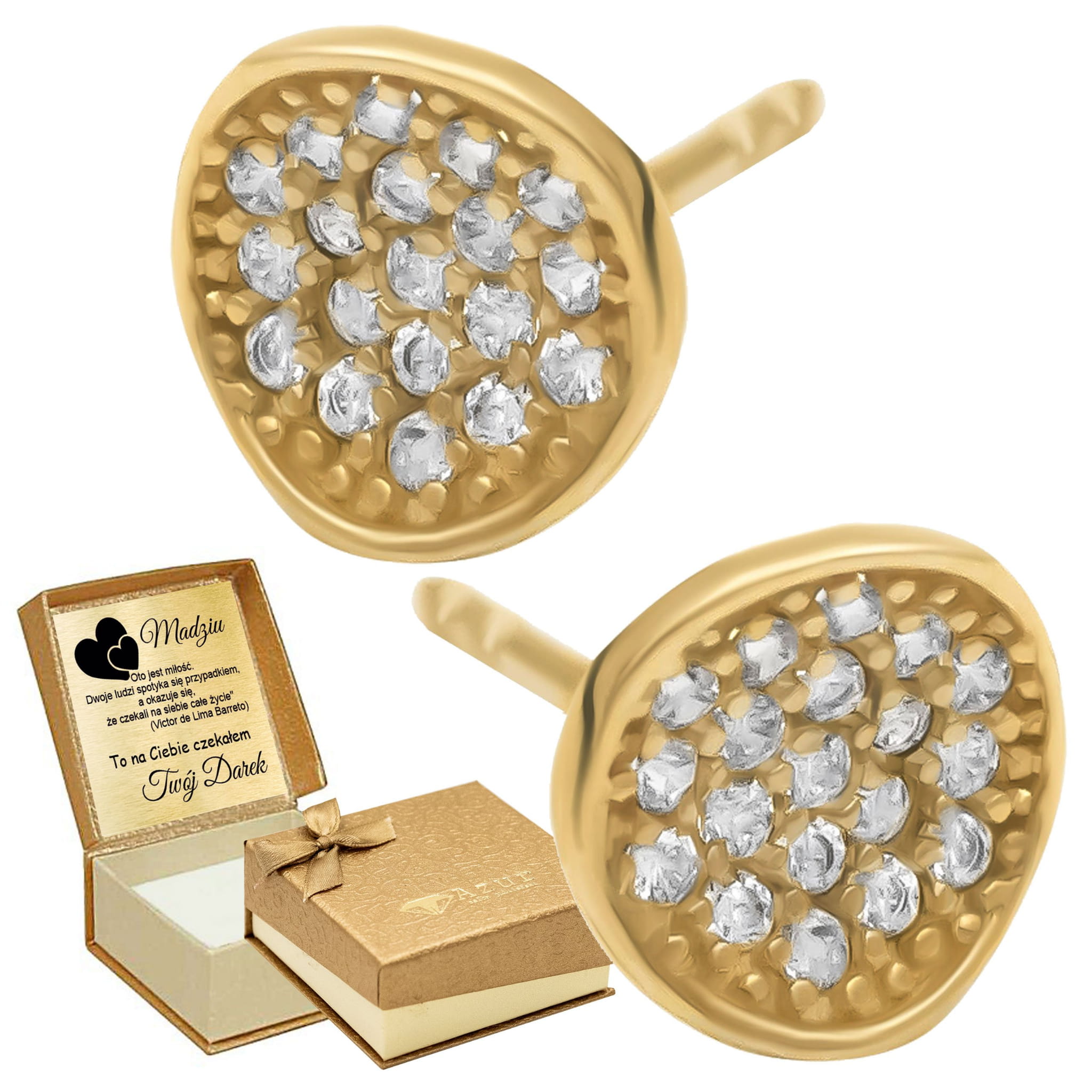 Pozłacane srebrne kolczyki z białymi cyrkoniami – biżuteria z grawerem