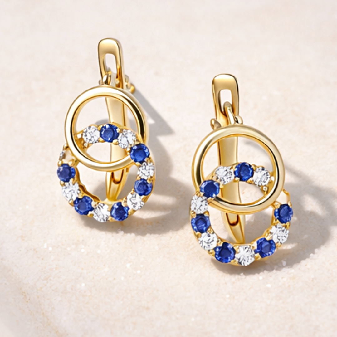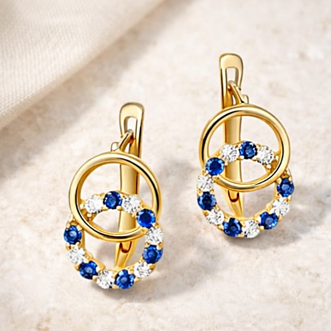 Złote Kolczyki Kółka z Niebieskimi i Białymi Cyrkoniami – elegancki blask w nowoczesnej formie