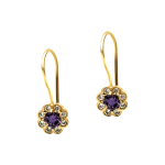 Złote Kolczyki Dziecięce w Kształcie Kwiatka z Fioletową Cyrkonią – Delikatność i Urok