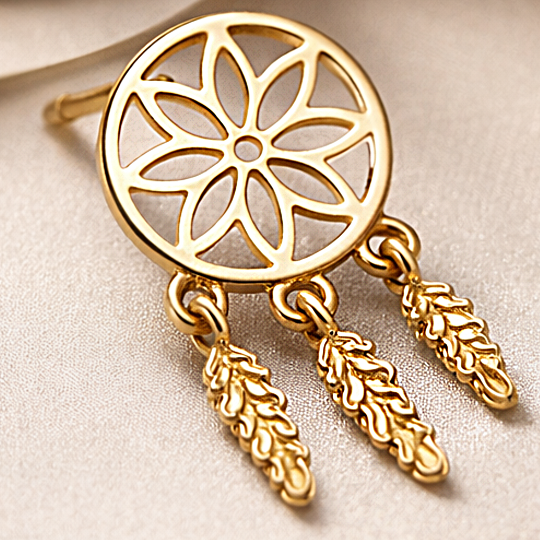 Złote Kolczyki Łapacz Snów z Piórkami – lekkość, symbolika i kobiecy blask