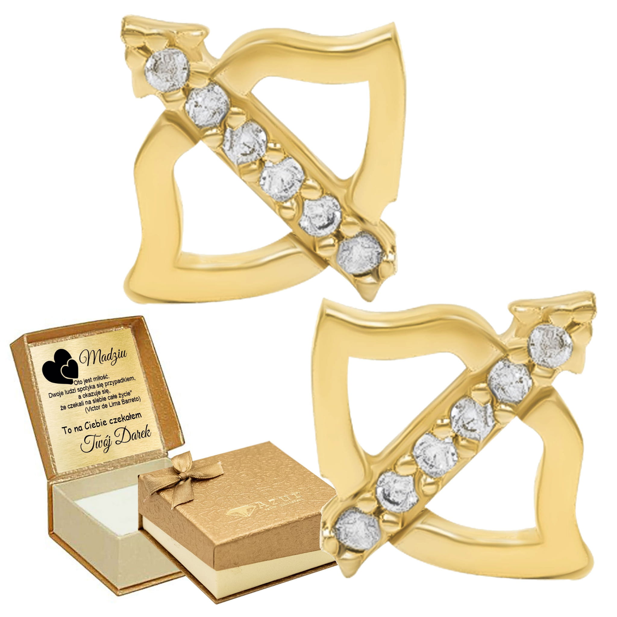 Pozłacane srebrne kolczyki z białymi cyrkoniami – biżuteria z grawerem