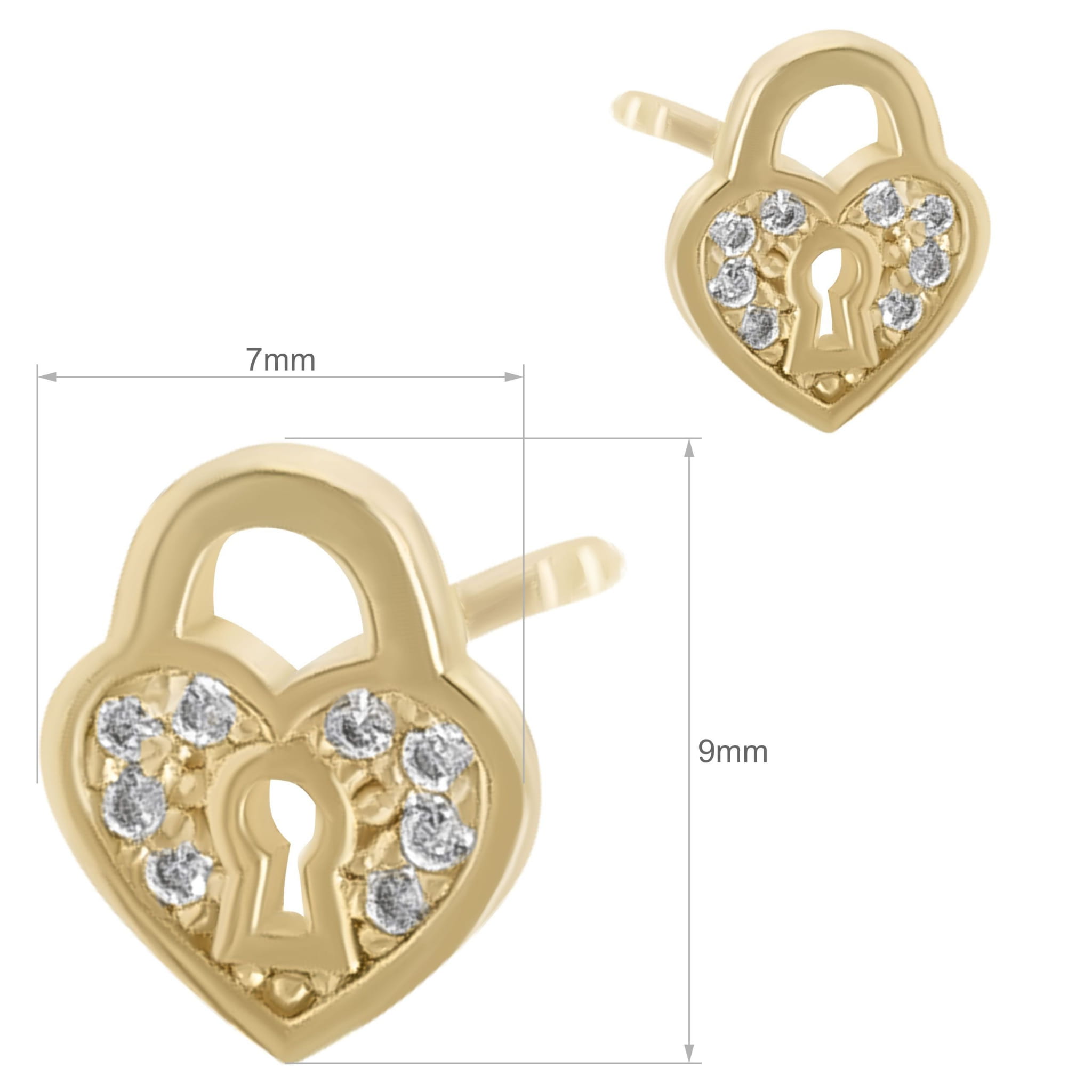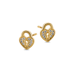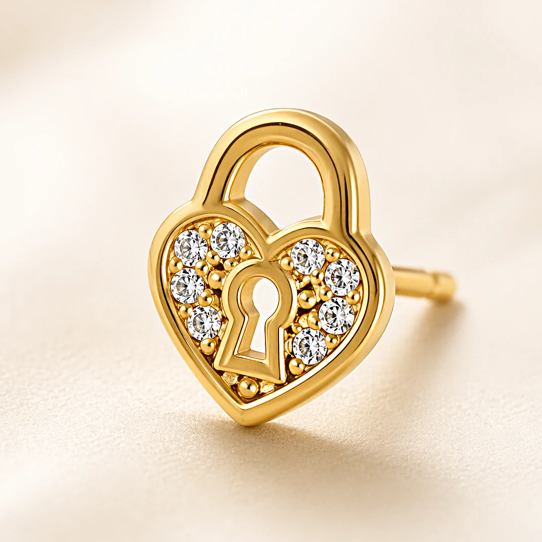 Złote kolczyki na sztyfcie kłódki serca z cyrkoniami