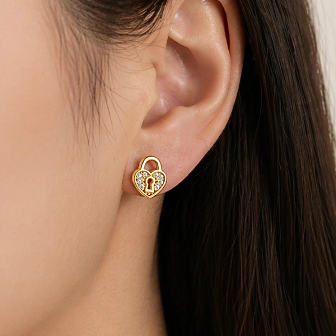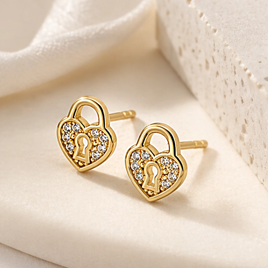 Złote Kolczyki Kłódki z Cyrkoniami – symbol uczuć w eleganckim wydaniu