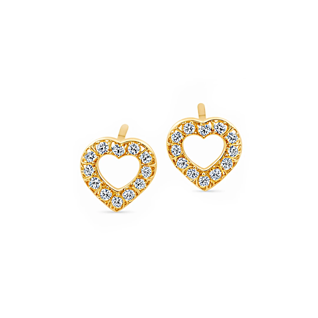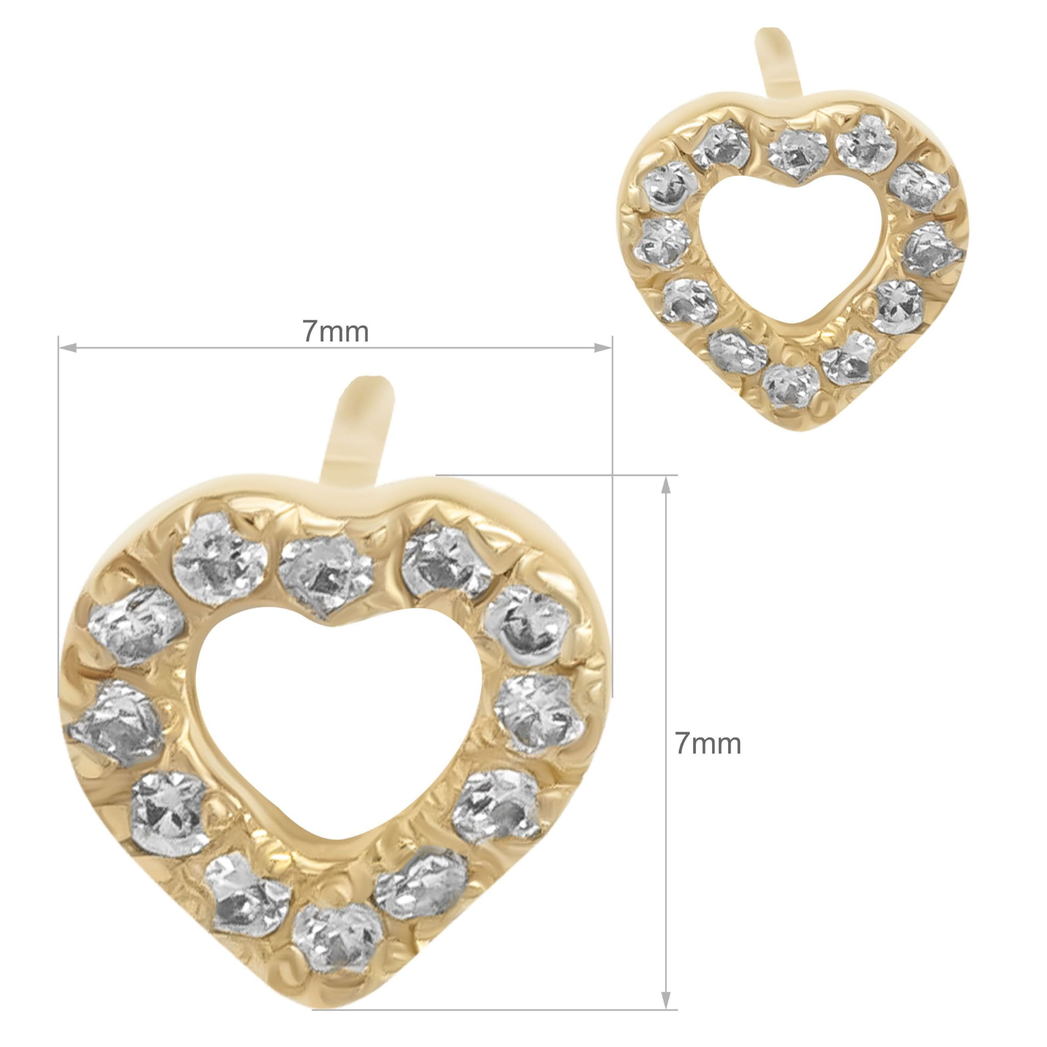 Złote kolczyki na sztyfcie otwarte serduszka z cyrkoniami