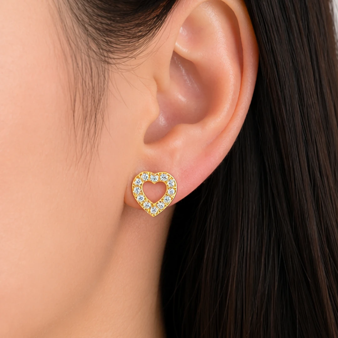 Złote Kolczyki Serca z Cyrkoniami – romantyczny blask, który przyciąga spojrzenia