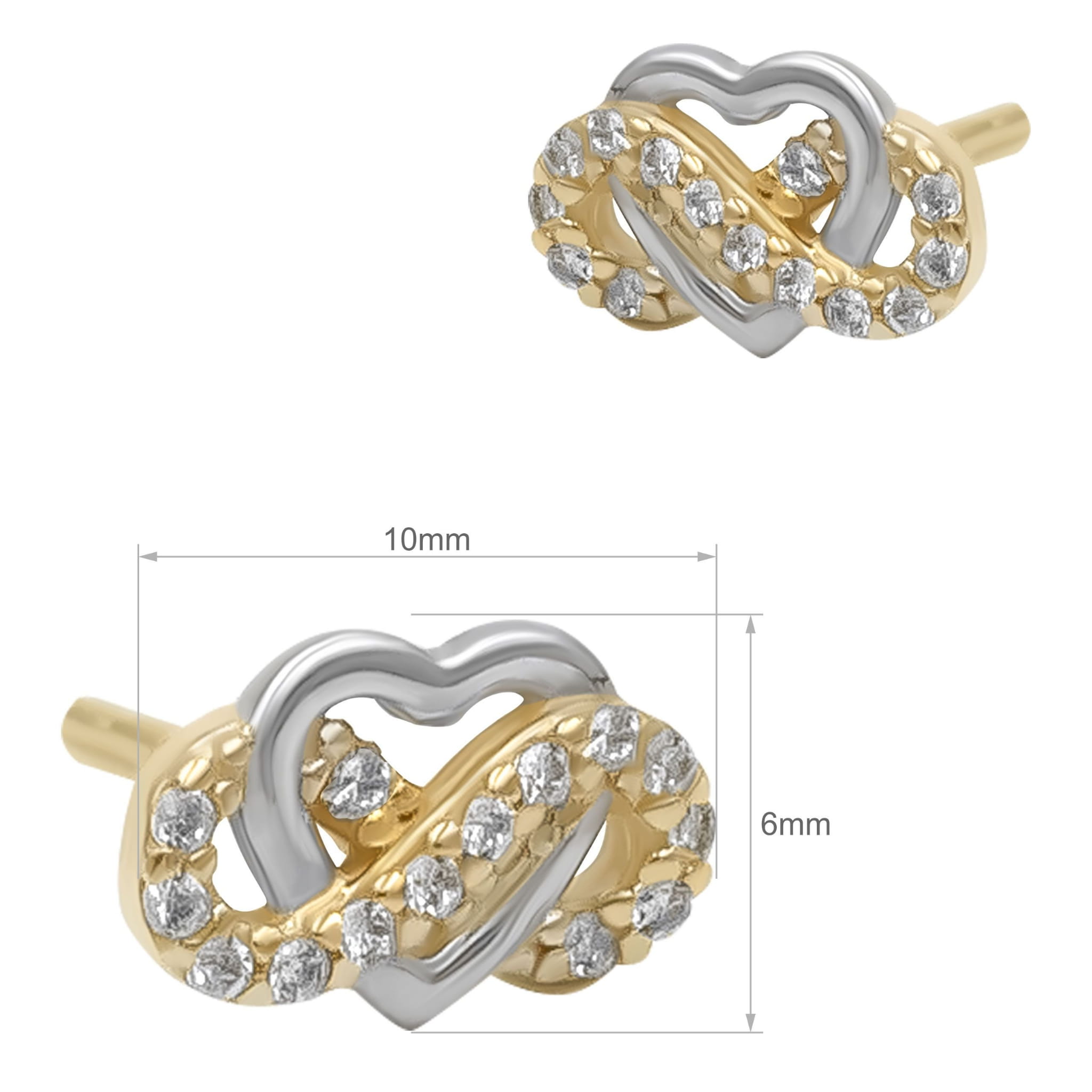 Złote kolczyki na sztyfcie przeplatane serca z cyrkoniami