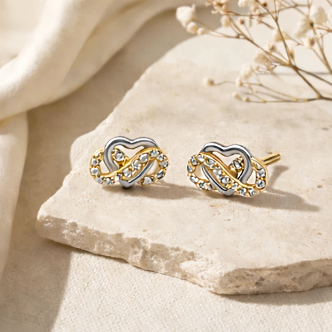 Złote Kolczyki Przeplatane Serca z Cyrkoniami – wyjątkowy blask w romantycznym wydaniu