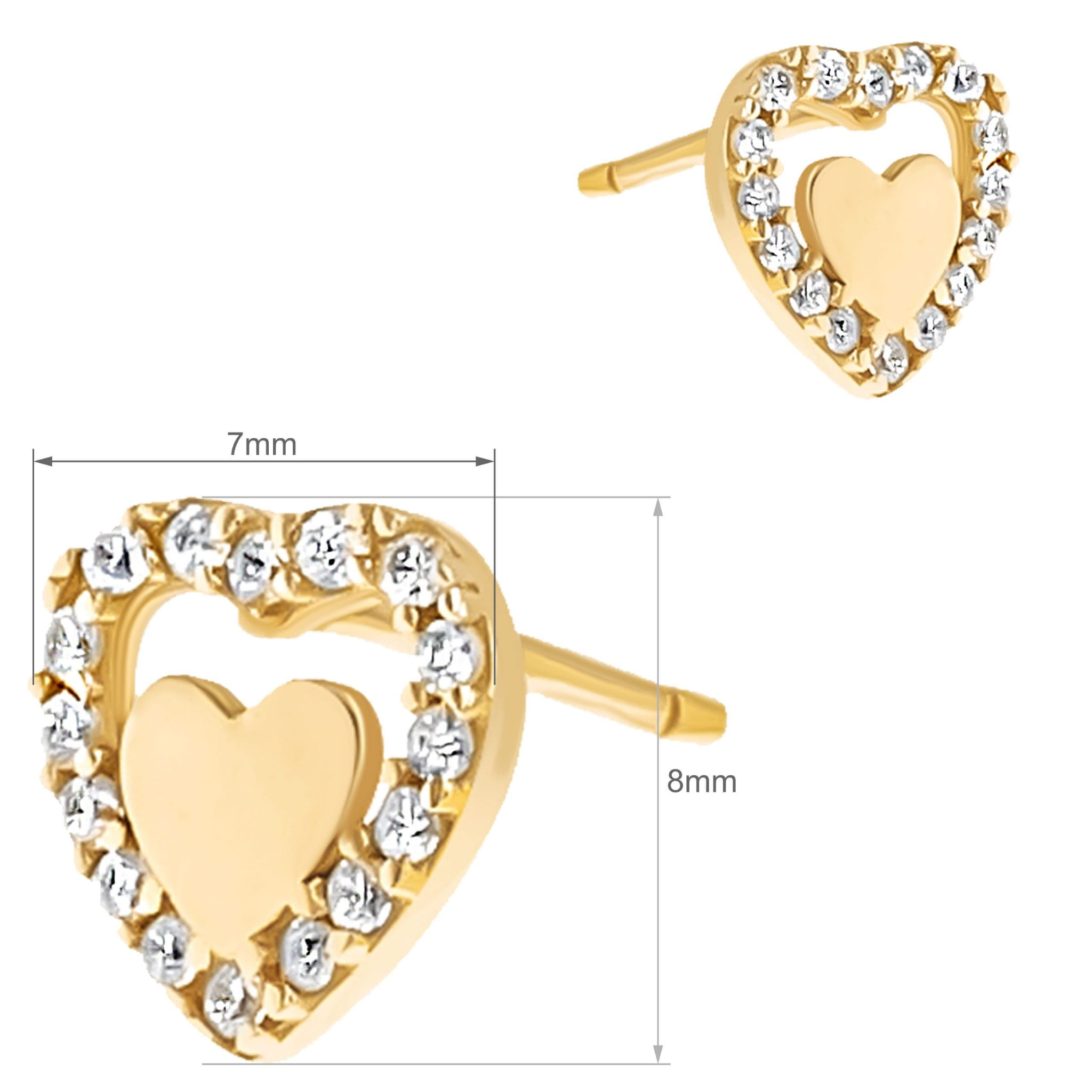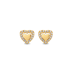 Złote kolczyki na sztyfcie serca z cyrkoniami