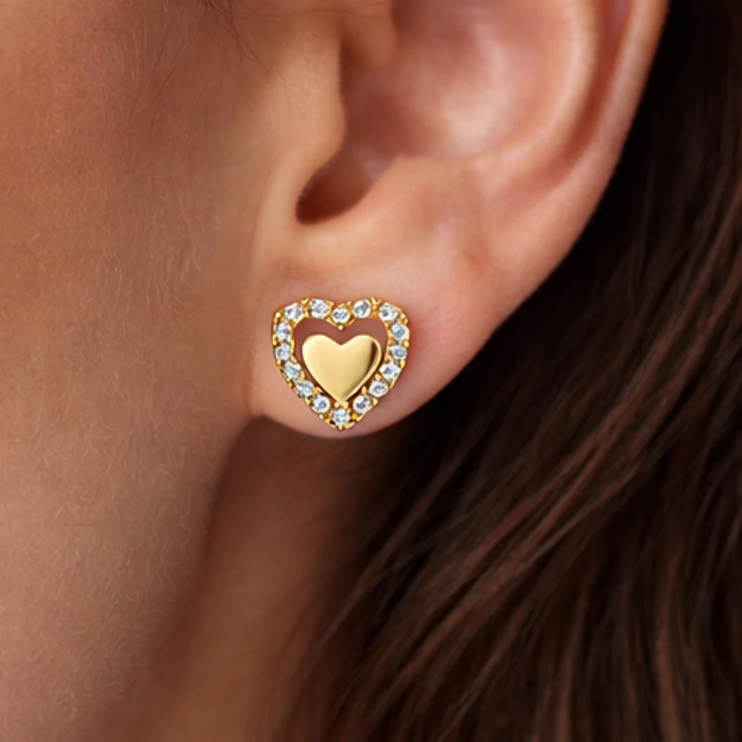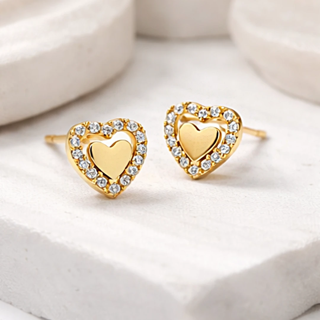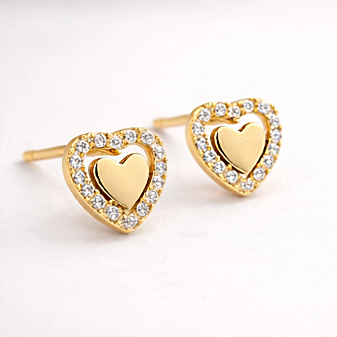 Złote Kolczyki "Połyskujące Serce" – Eleganckie Kolczyki z Cyrkoniami