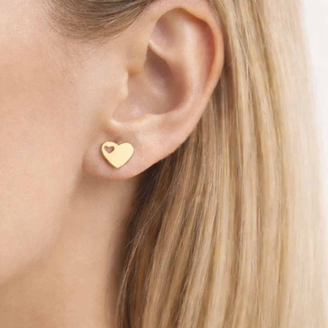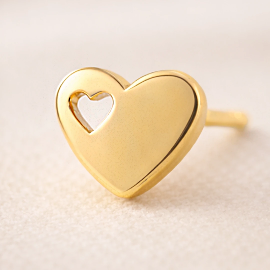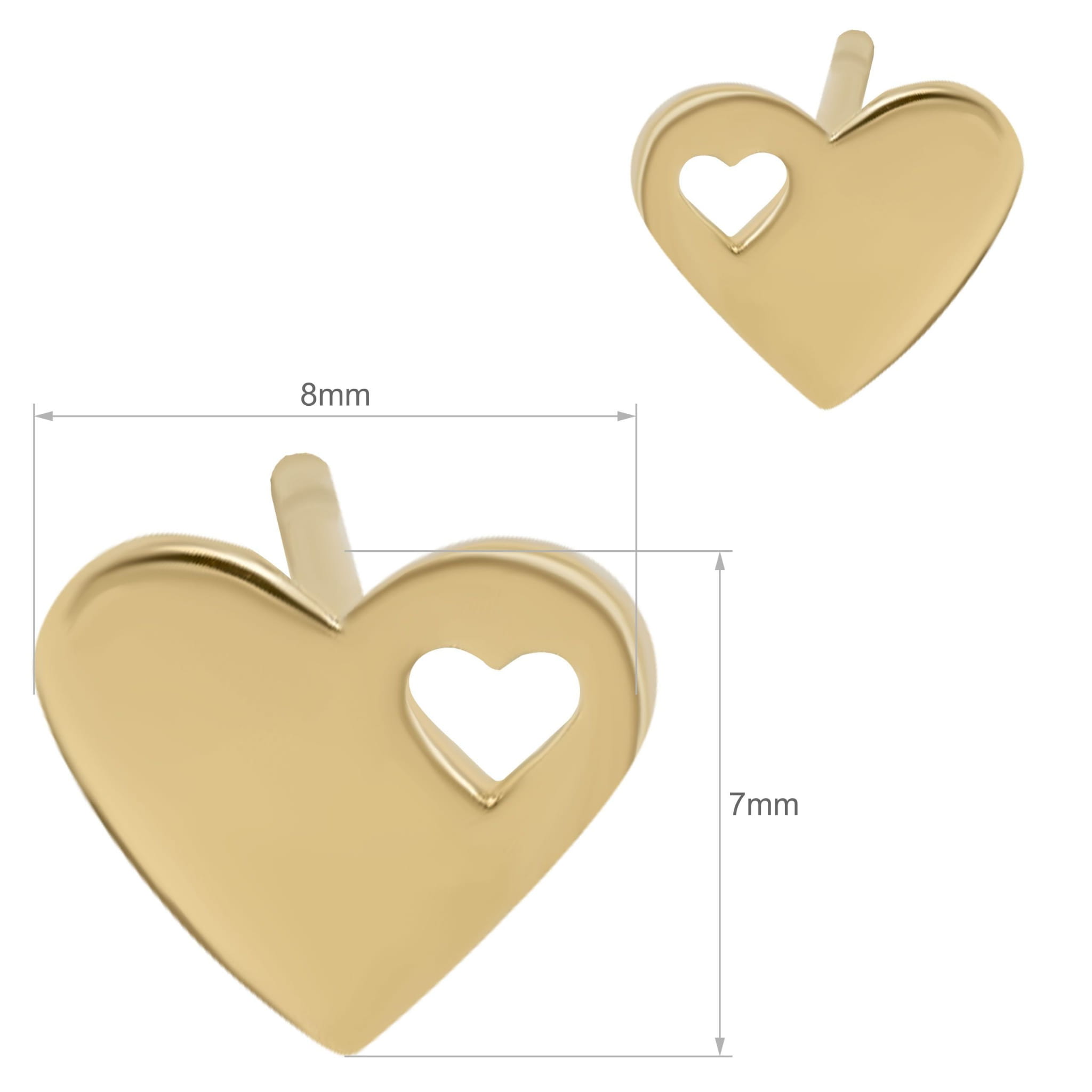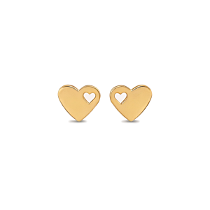 Złote kolczyki na sztyfcie serca z wyciętym serduszkiem