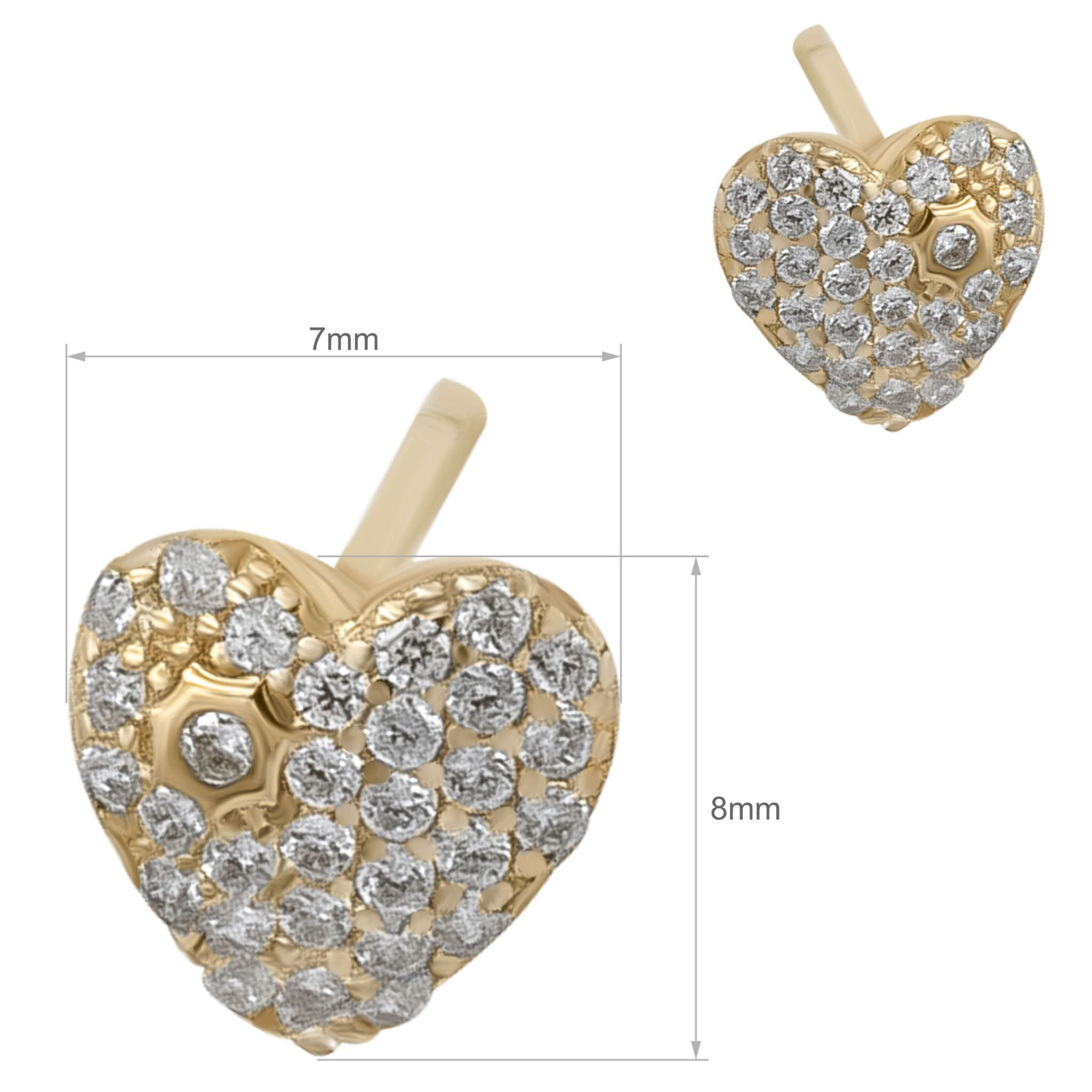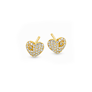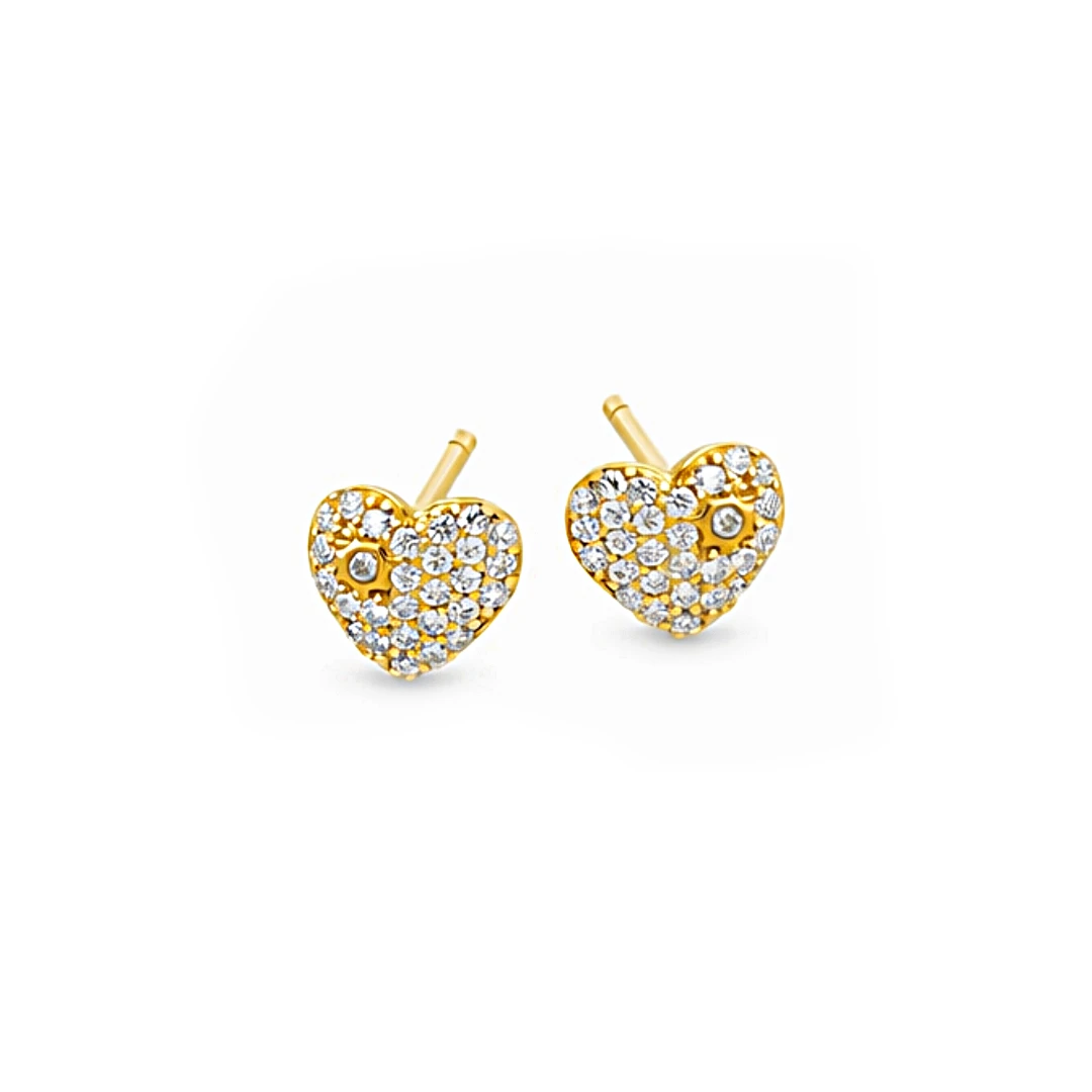 Złote kolczyki na sztyfcie serduszka wysadzane cyrkoniami