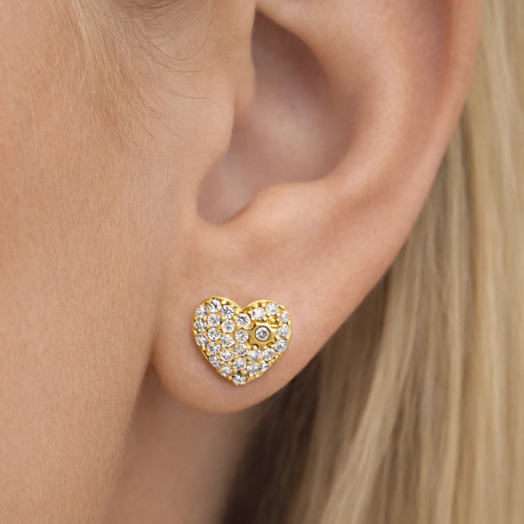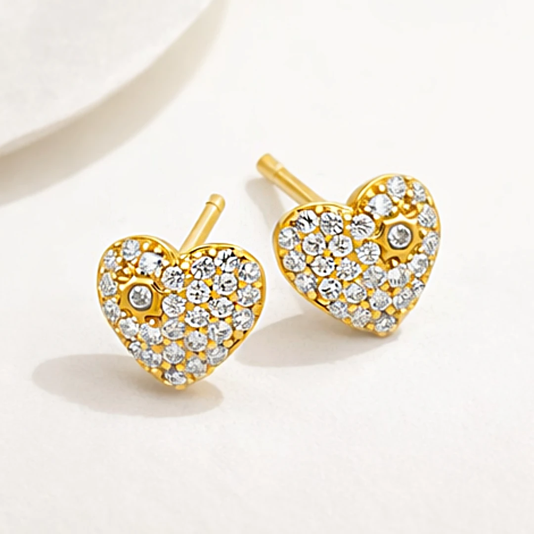 Złote Kolczyki "Połyskujące Serce" – Eleganckie Kolczyki z Cyrkoniami