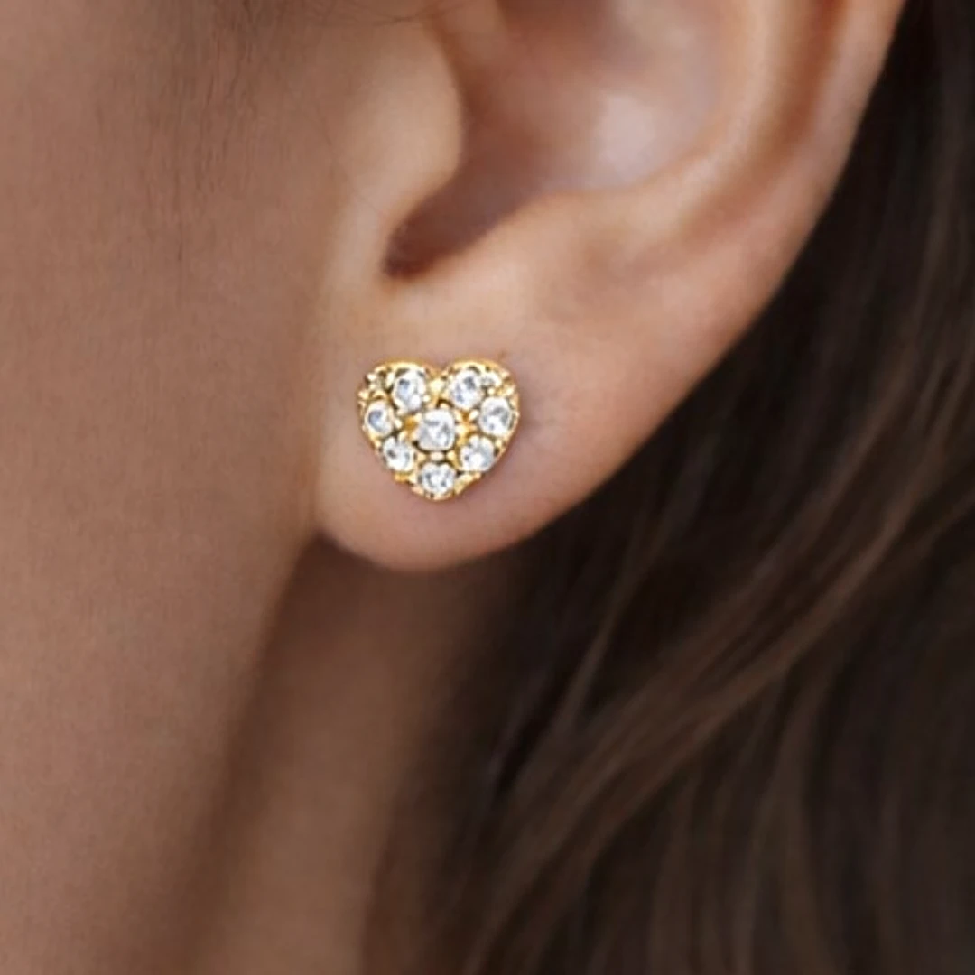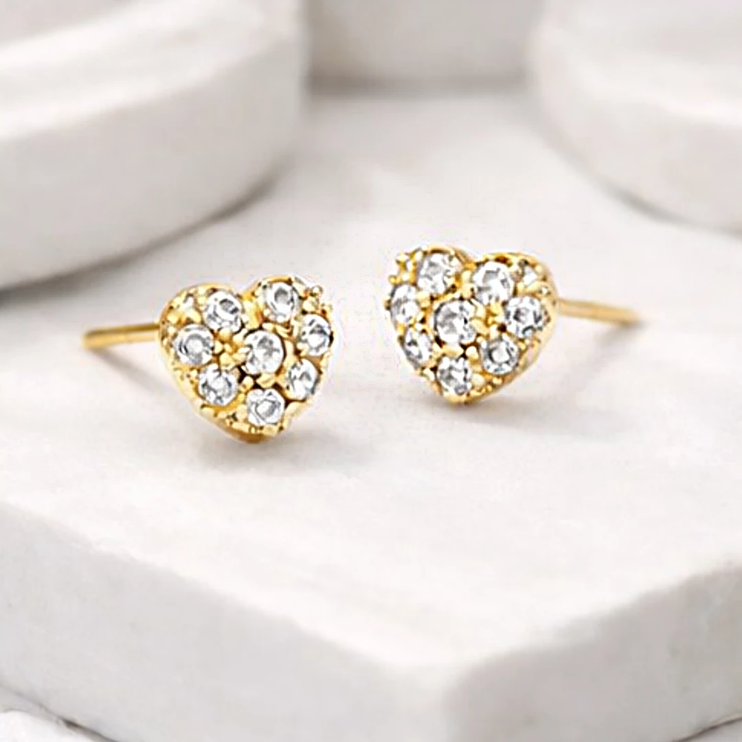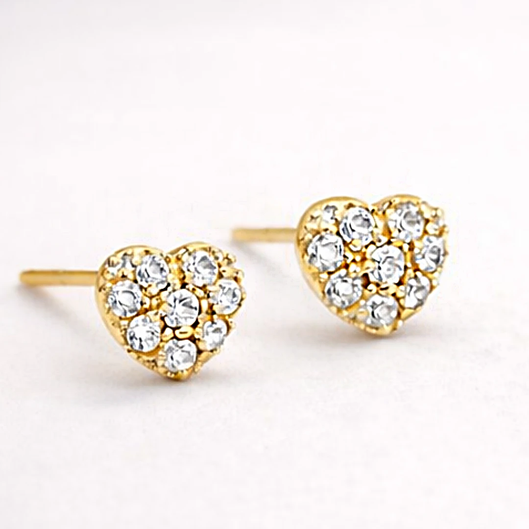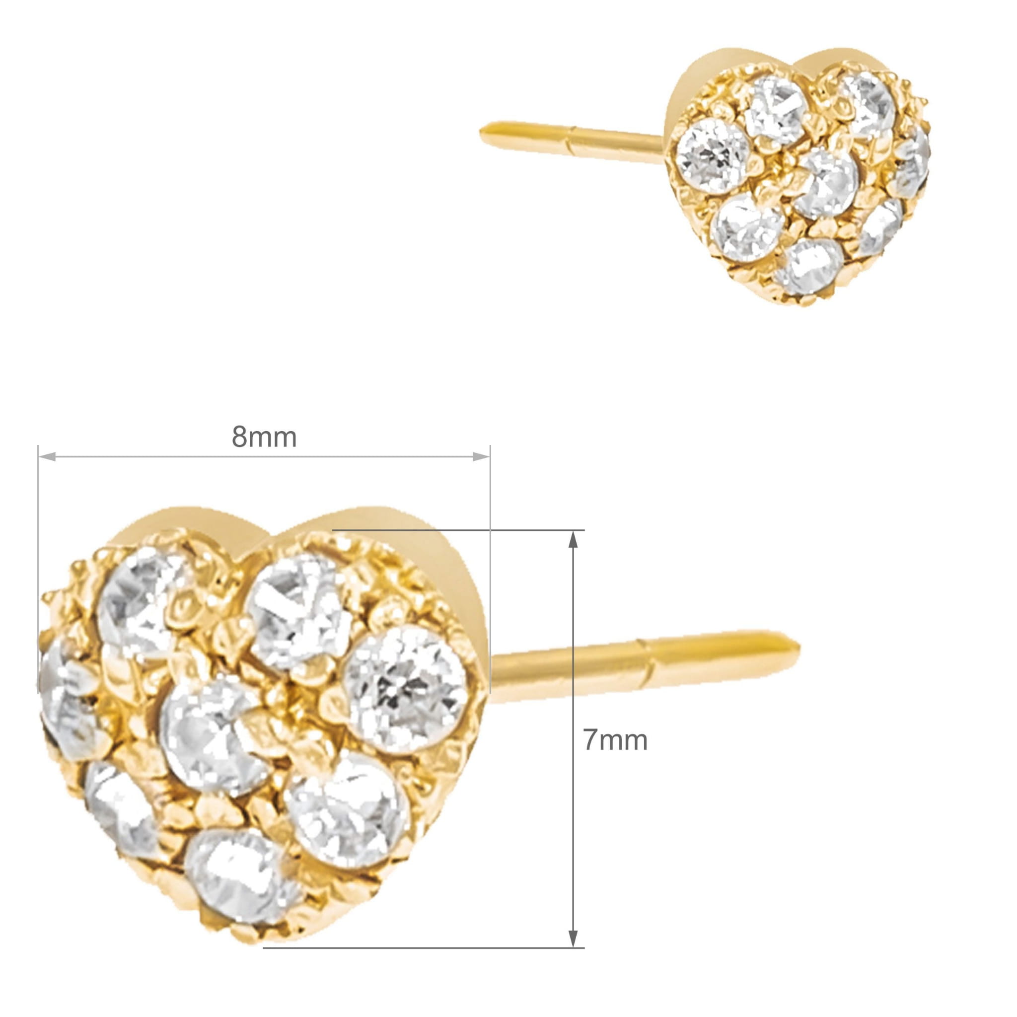 Złote kolczyki na sztyfcie serduszka z cyrkoniami