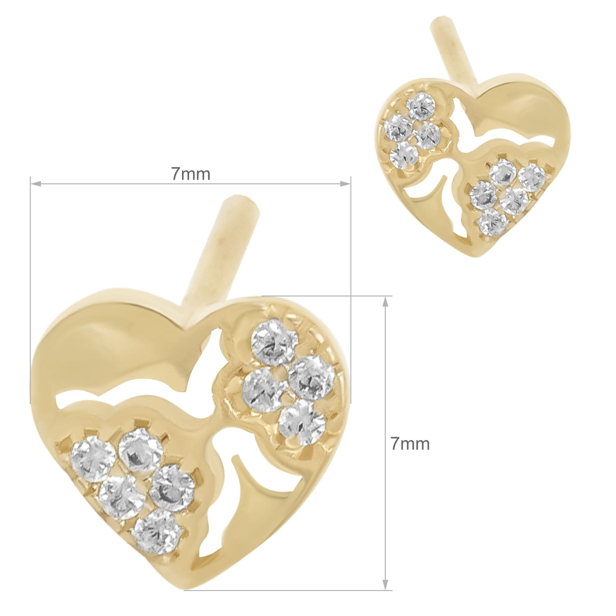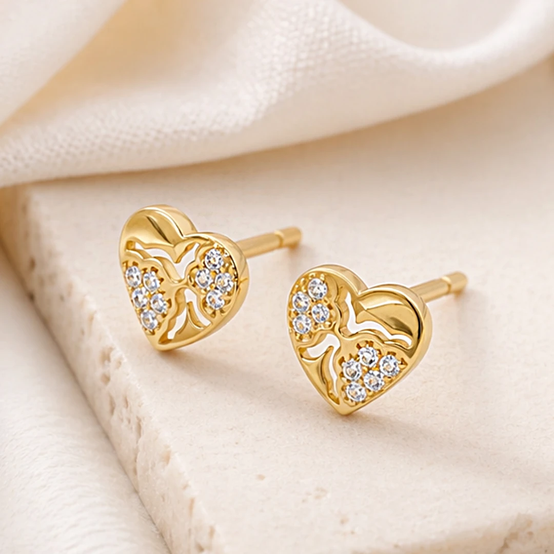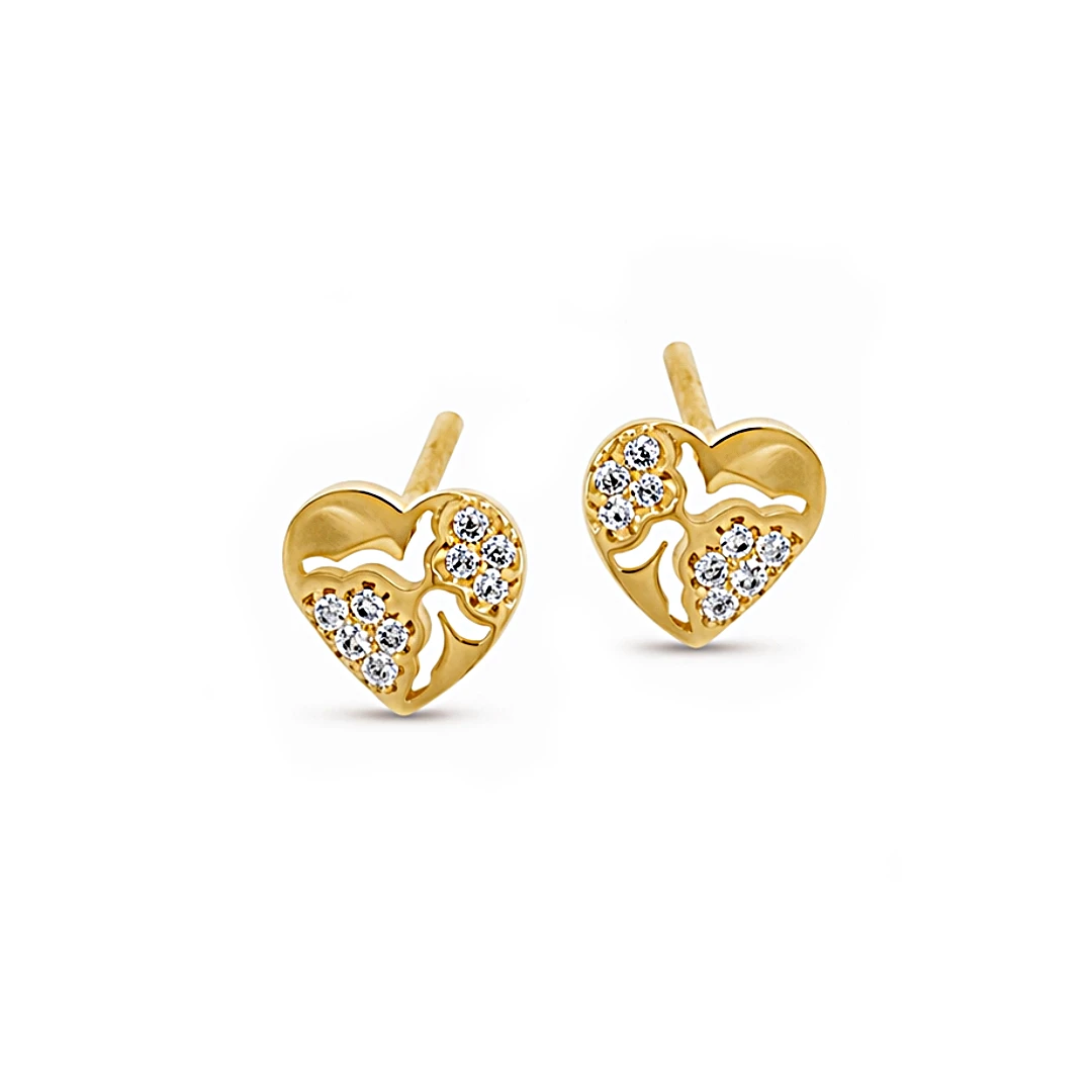 Złote kolczyki na sztyfcie serduszka z dekoracyjnym wycięciem i cyrkoniami