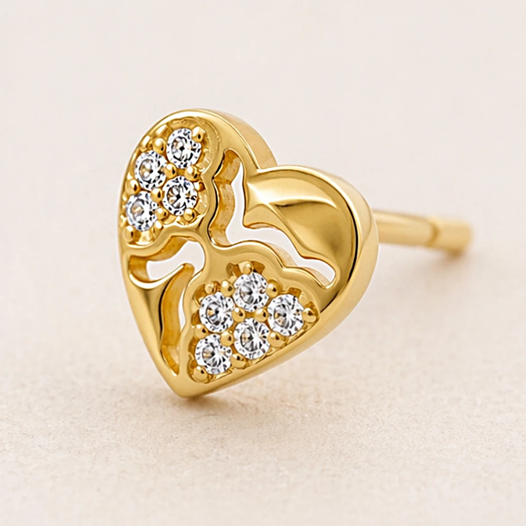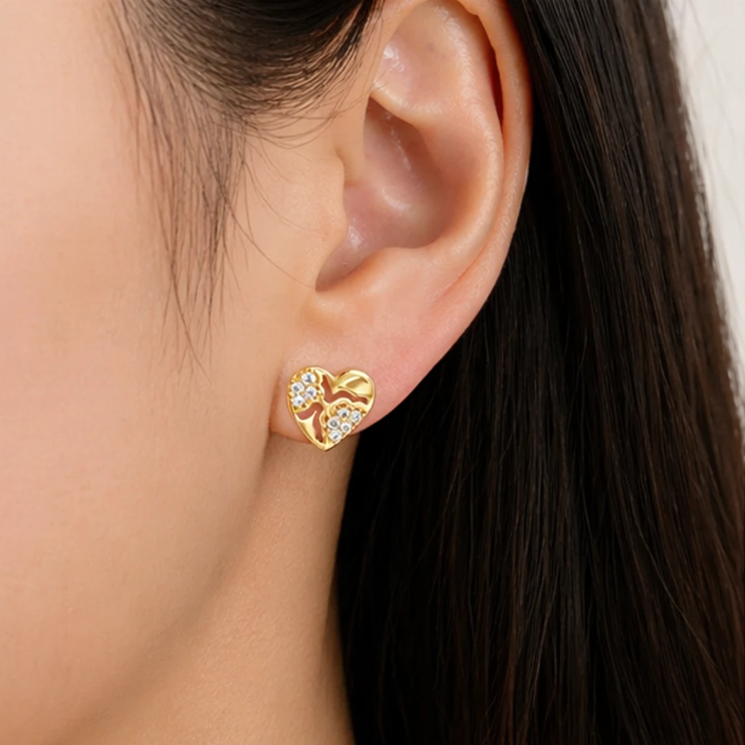 Złote Kolczyki "Połyskujące Serce" – Eleganckie Kolczyki z Cyrkoniami