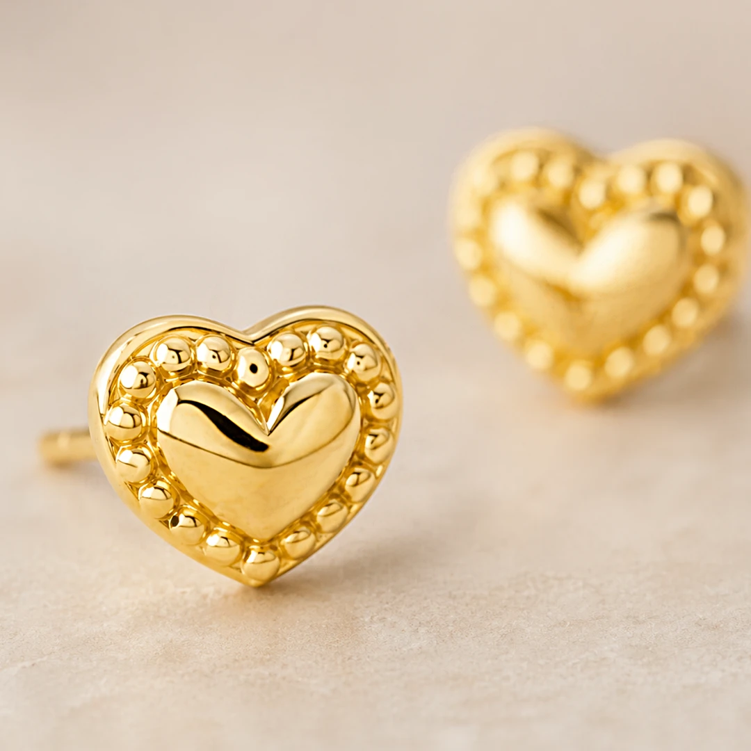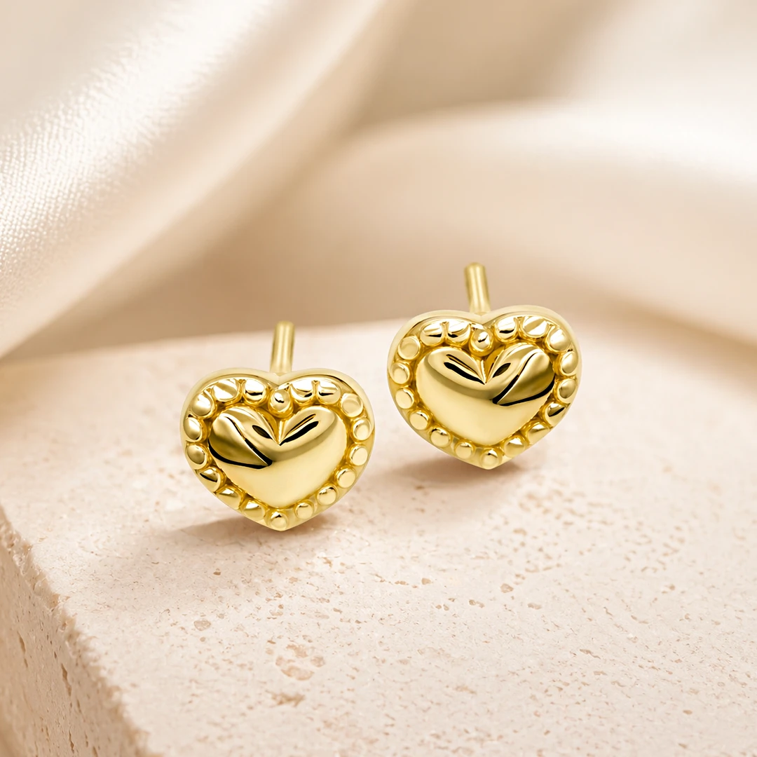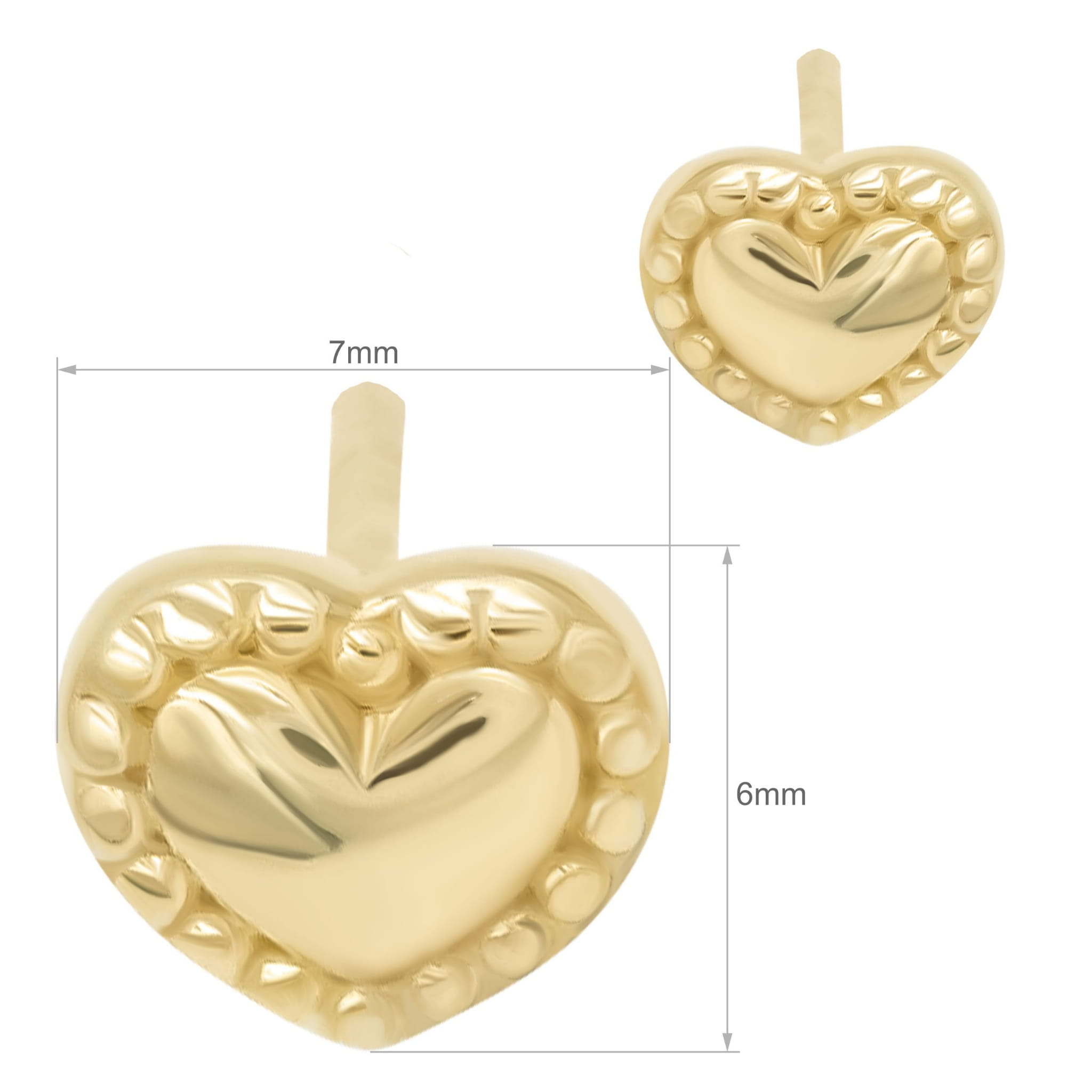Złote kolczyki na sztyfcie serduszka z ozdobnym rantem