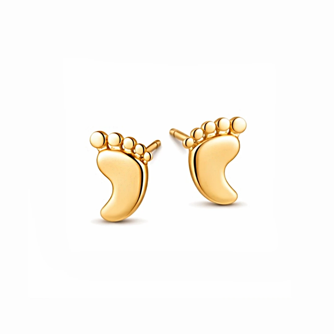 Złote Kolczyki "Małe Stópki" – Urocze Kolczyki z Cyrkoniami