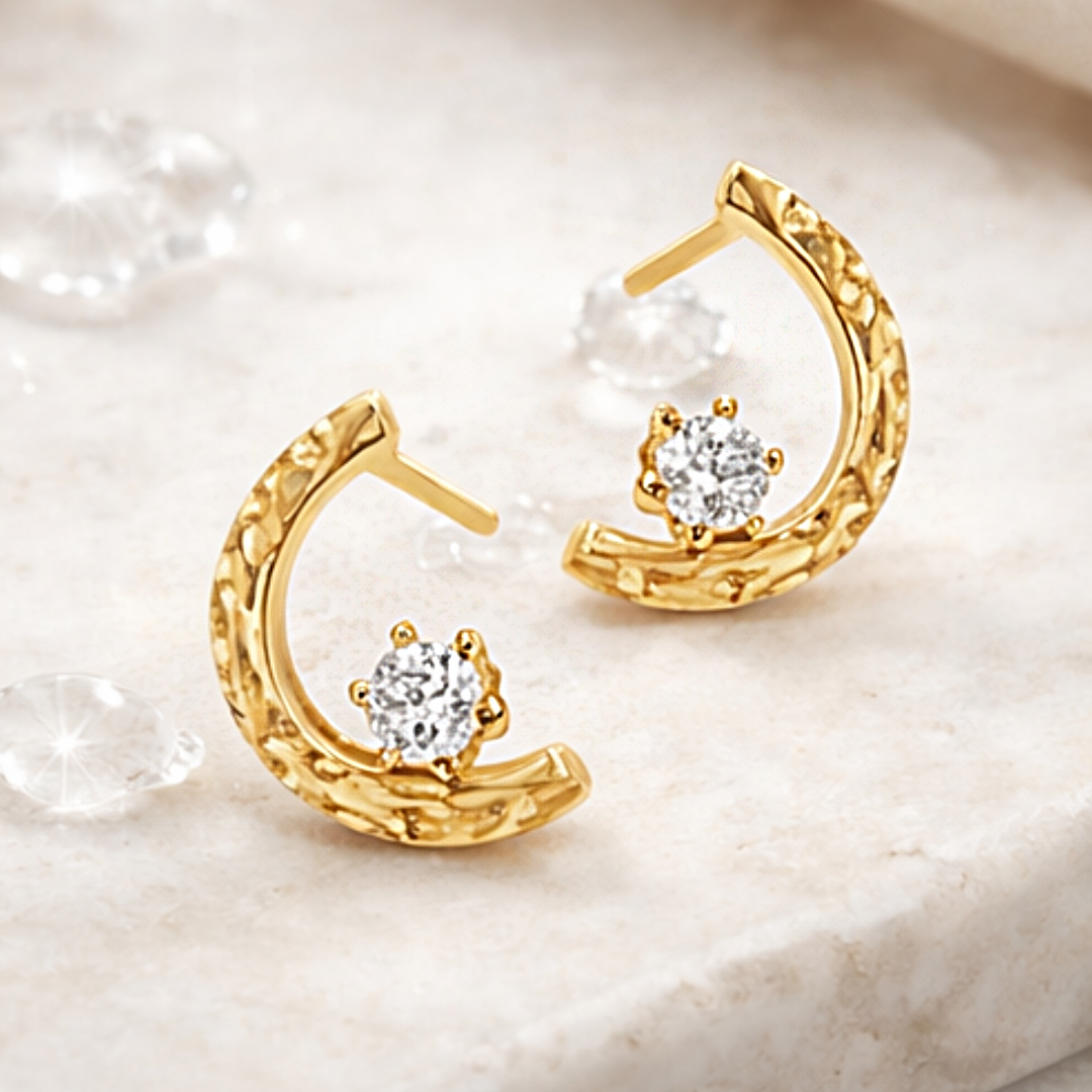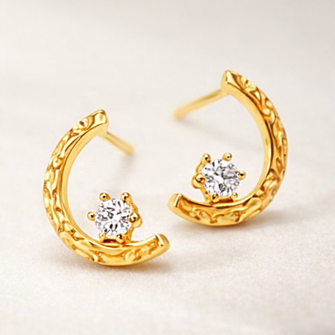 Złote Kolczyki "Księżycowy Blask" – Subtelne Kolczyki w Kształcie Półksiężyca