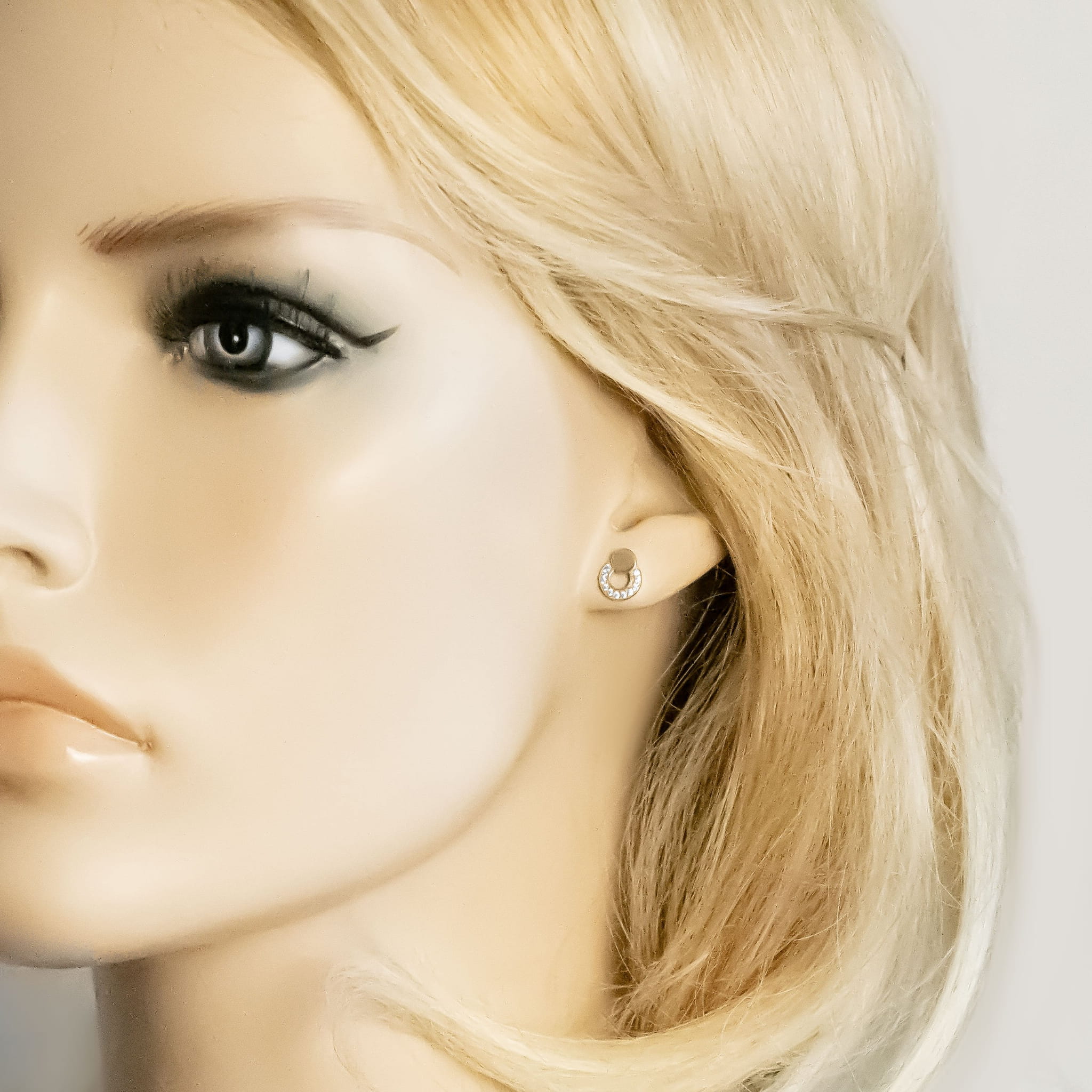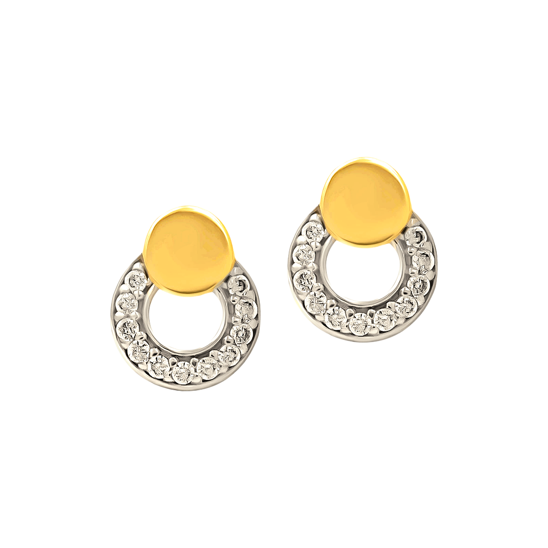 Kolczyki sztyfty „Duo Elegance” to propozycja dla miłośniczek biżuterii, która wyróżnia się nowoczesnym designem i dbałością o detale. Połączenie złotej powierzchni z cyrkoniami, osadzonymi na srebrzystym pierścieniu, tworzy wyrafinowaną kompozycję, idealną do codziennych i wieczorowych stylizacji. To biżuteria, która przyciąga spojrzenia i dodaje blasku każdej kreacji.