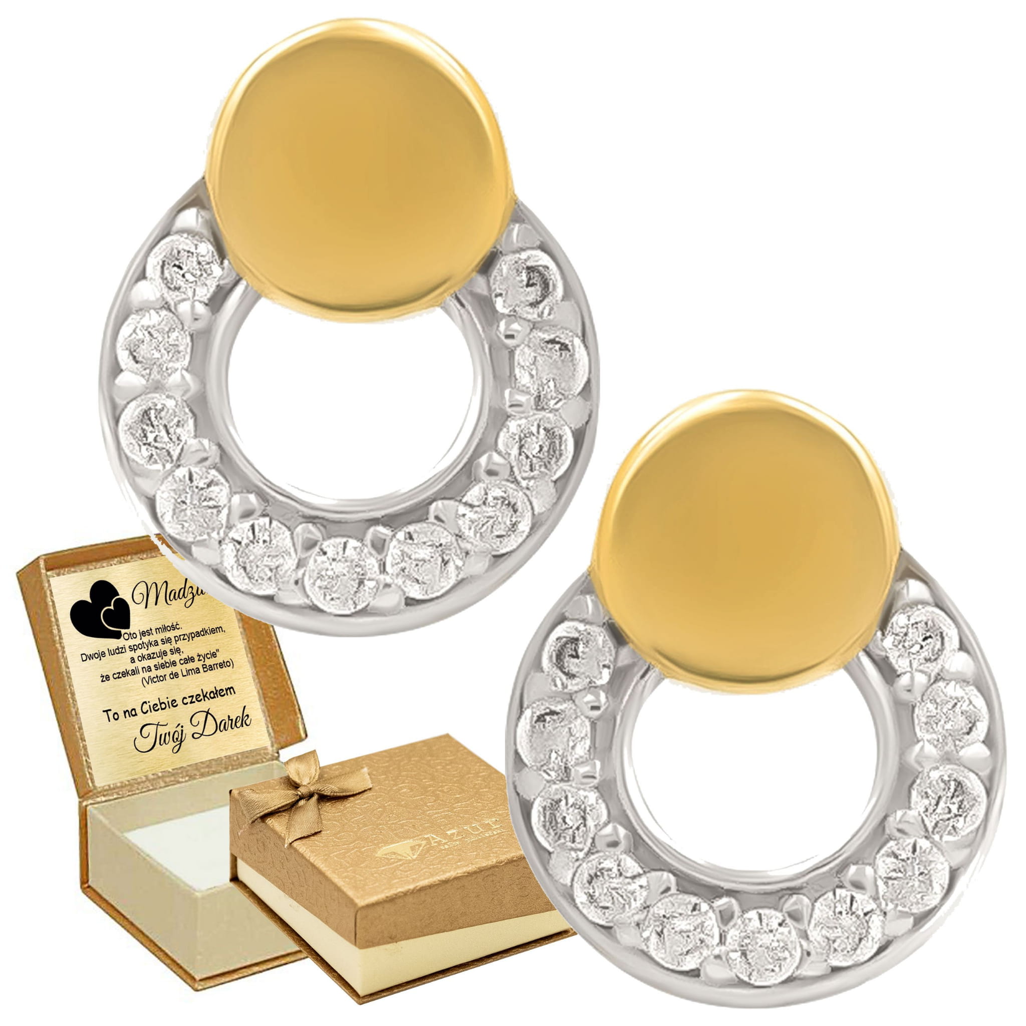 Pozłacane srebrne kolczyki z białymi cyrkoniami – biżuteria z grawerem