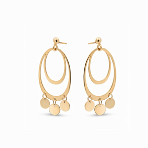 Złote kolczyki wiszące o owalnym kształcie to efektowna biżuteria dla kobiet, które cenią nowoczesną elegancję i subtelny połysk. Delikatne, ruchome blaszki pięknie odbijają światło, dzięki czemu kolczyki dodają stylizacji lekkości oraz wyrazistego, modnego charakteru.