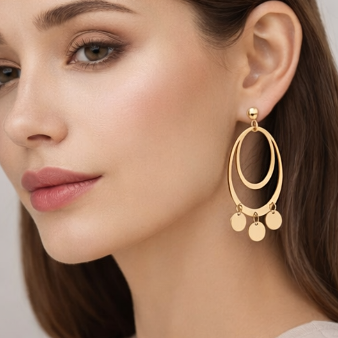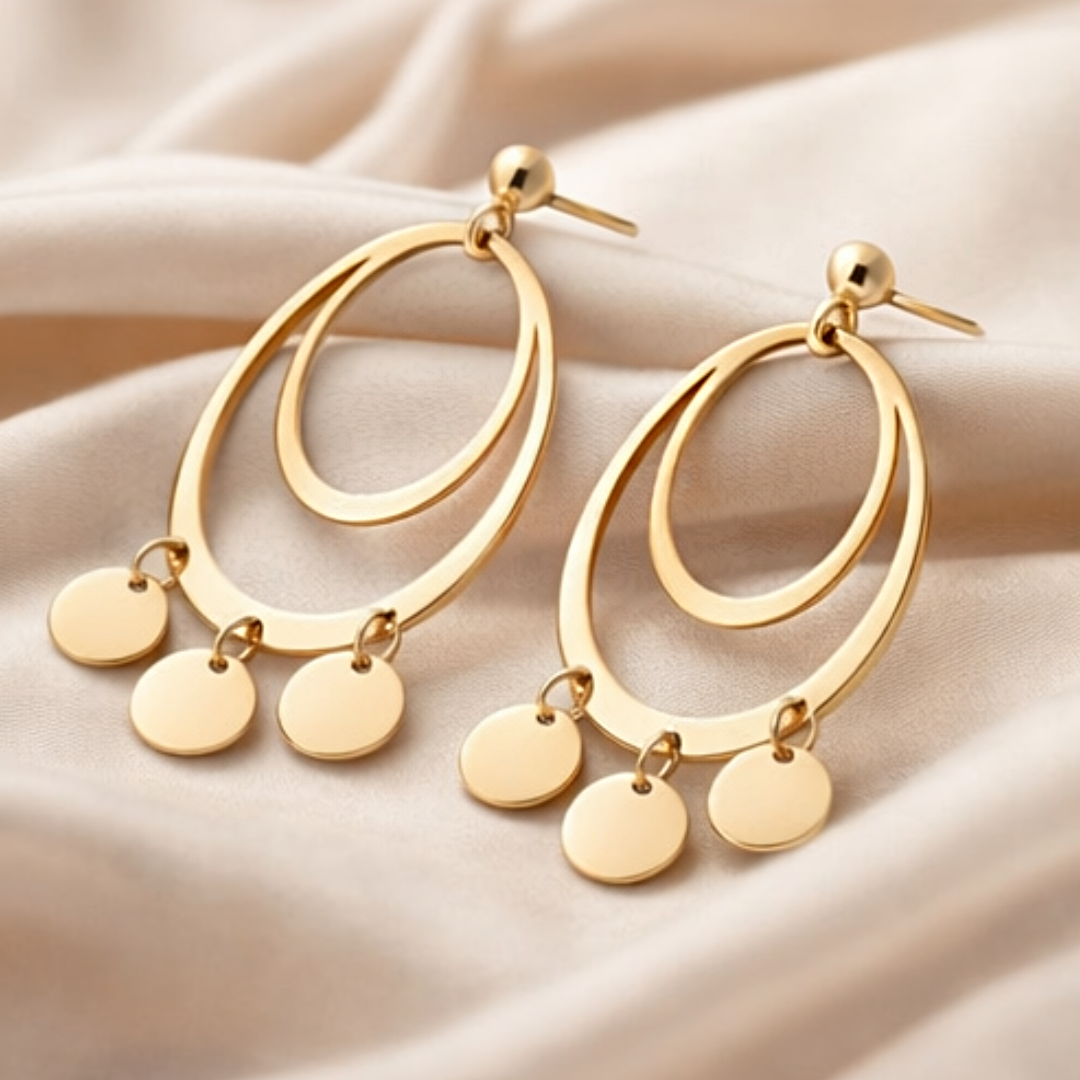 Złote Kolczyki Wiszące Owalne z Blaszkami – Lekkość ruchu i kobiecy blask