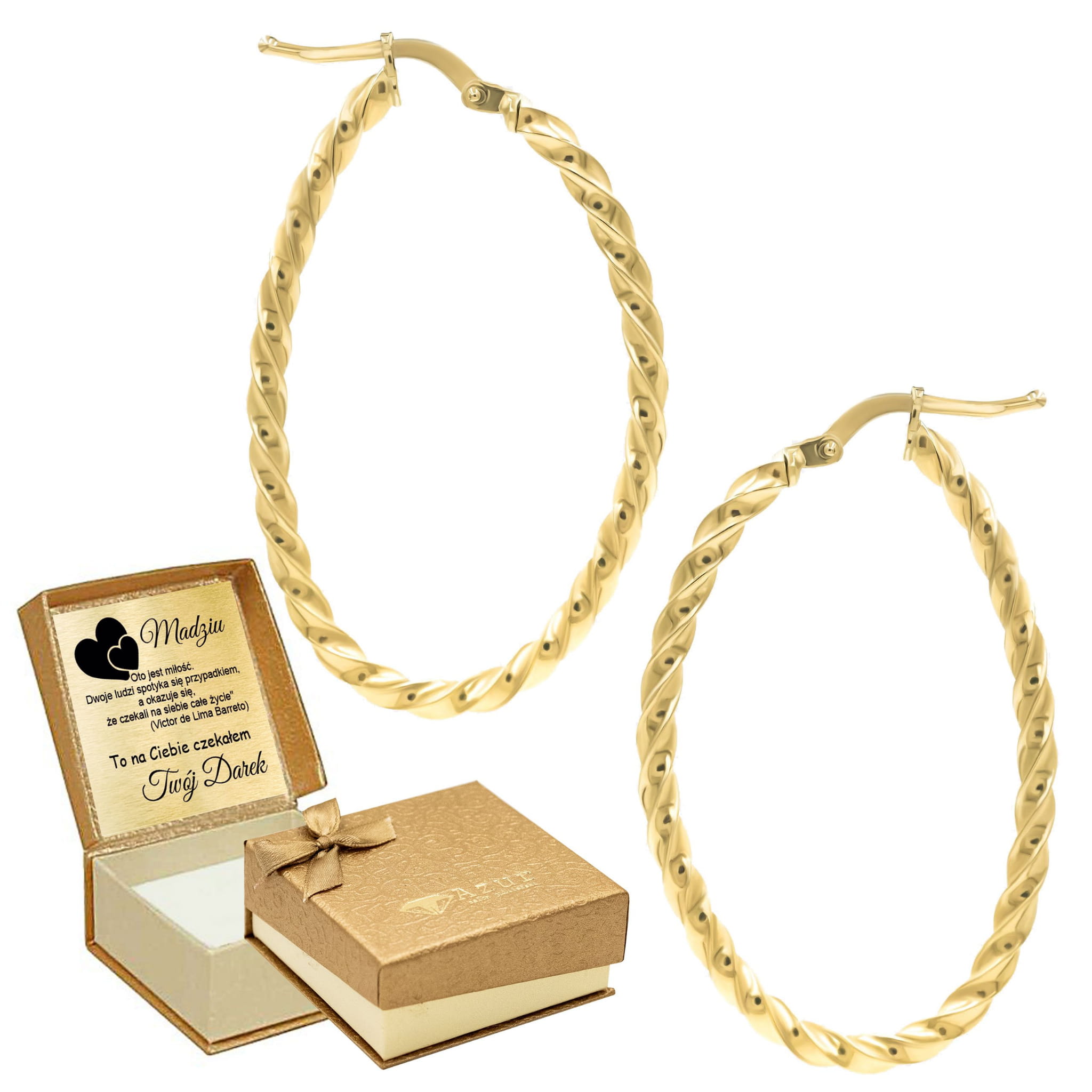 Kolczyki są zapakowane gratis w eleganckie pudełko, co czyni je idealnym wyborem na prezent, bez konieczności dodatkowych przygotowań. Istnieje również możliwość bezpłatnego dołączenia blaszki z grawerem i dedykacją, dzięki czemu prezent stanie się jeszcze bardziej osobisty i wyjątkowy.