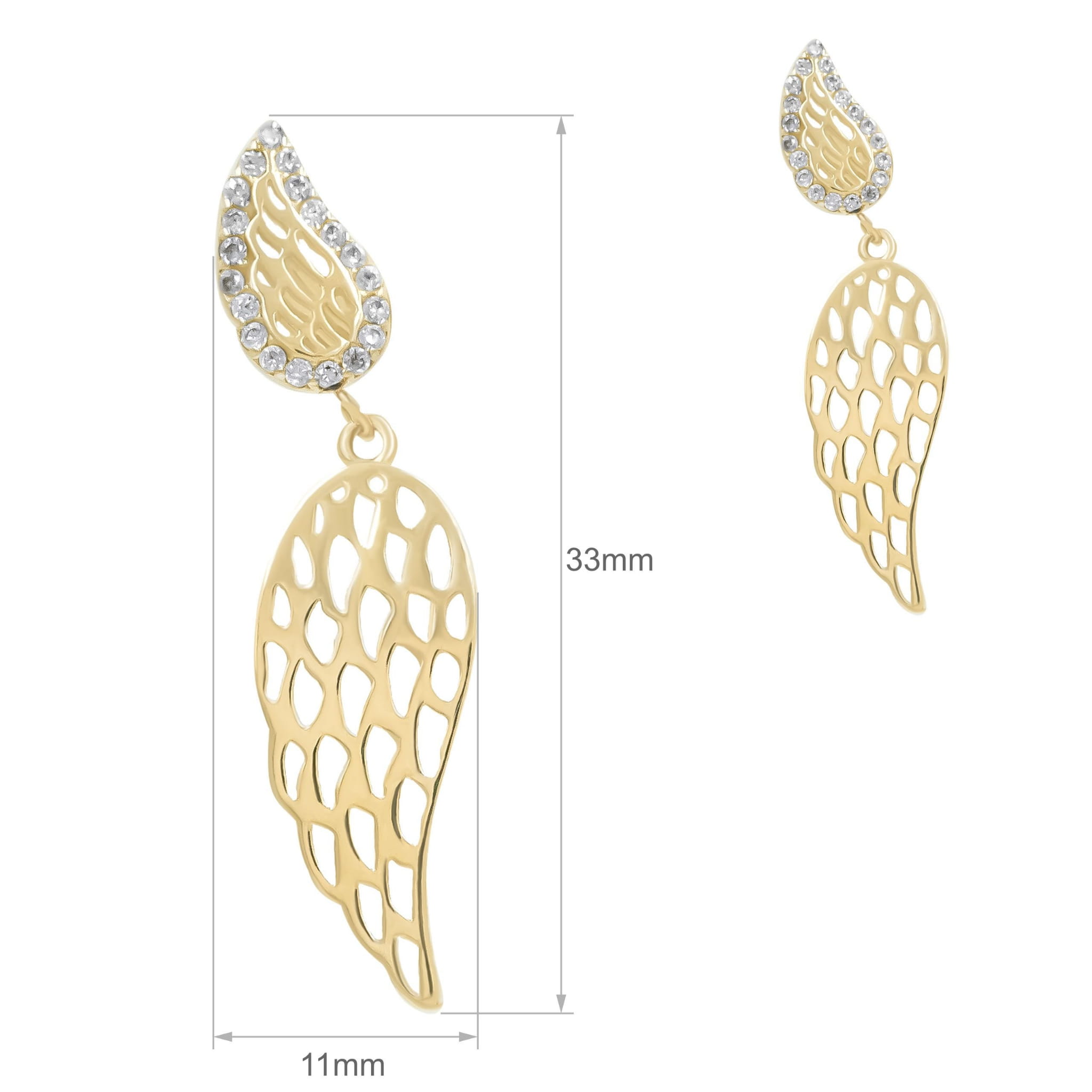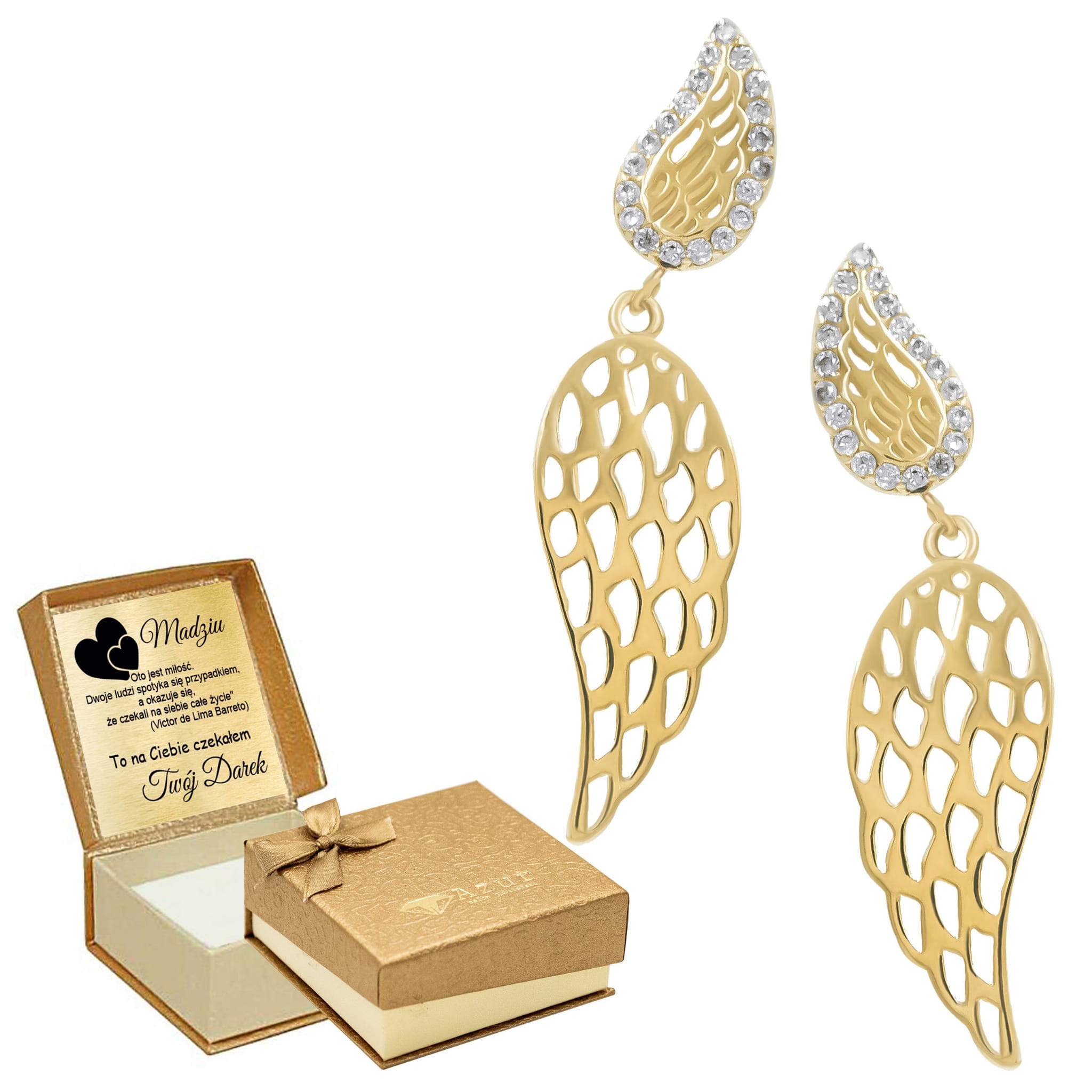 Złote Kolczyki Skrzydła z Cyrkoniami – Elegancka Biżuteria z Anielskim Motywem