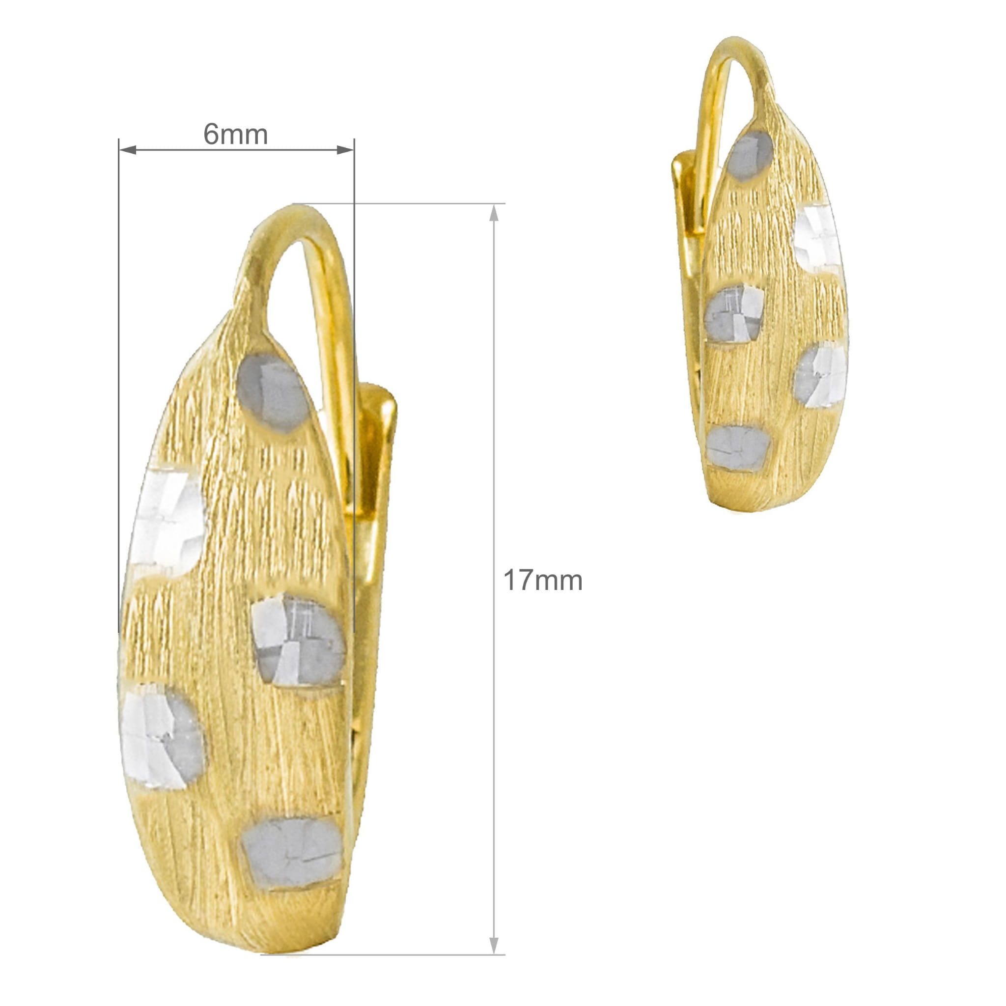 Złote kolczyki z matowym wykończeniem i diamentowanymi akcentami to idealny wybór dla kobiet, które cenią sobie wyjątkowe połączenie klasyki z nowoczesnością. Są doskonałym dodatkiem na każdą okazję, który doda stylu i elegancji każdej stylizacji.