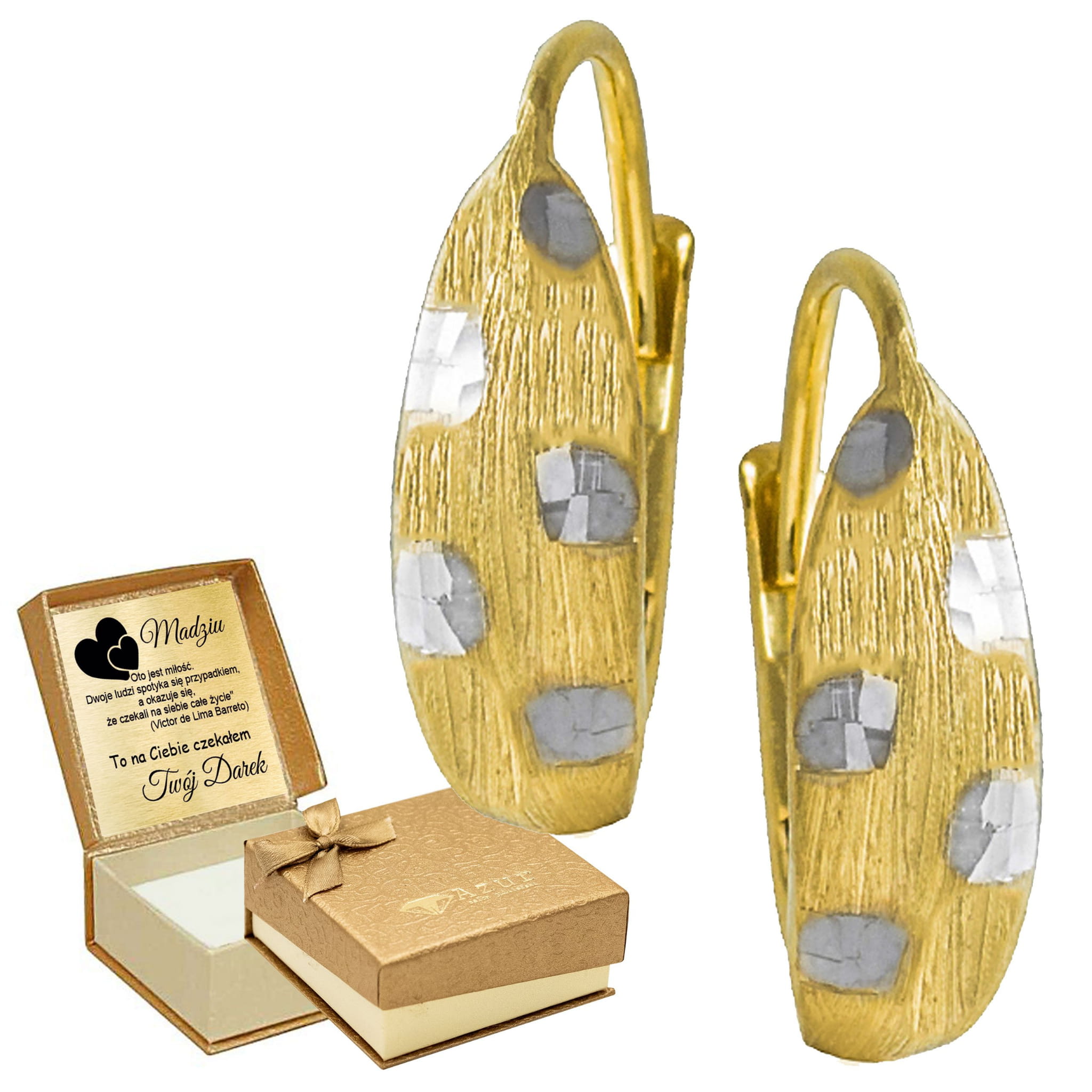 Pozłacane srebrne kolczyki z białymi cyrkoniami – biżuteria z grawerem