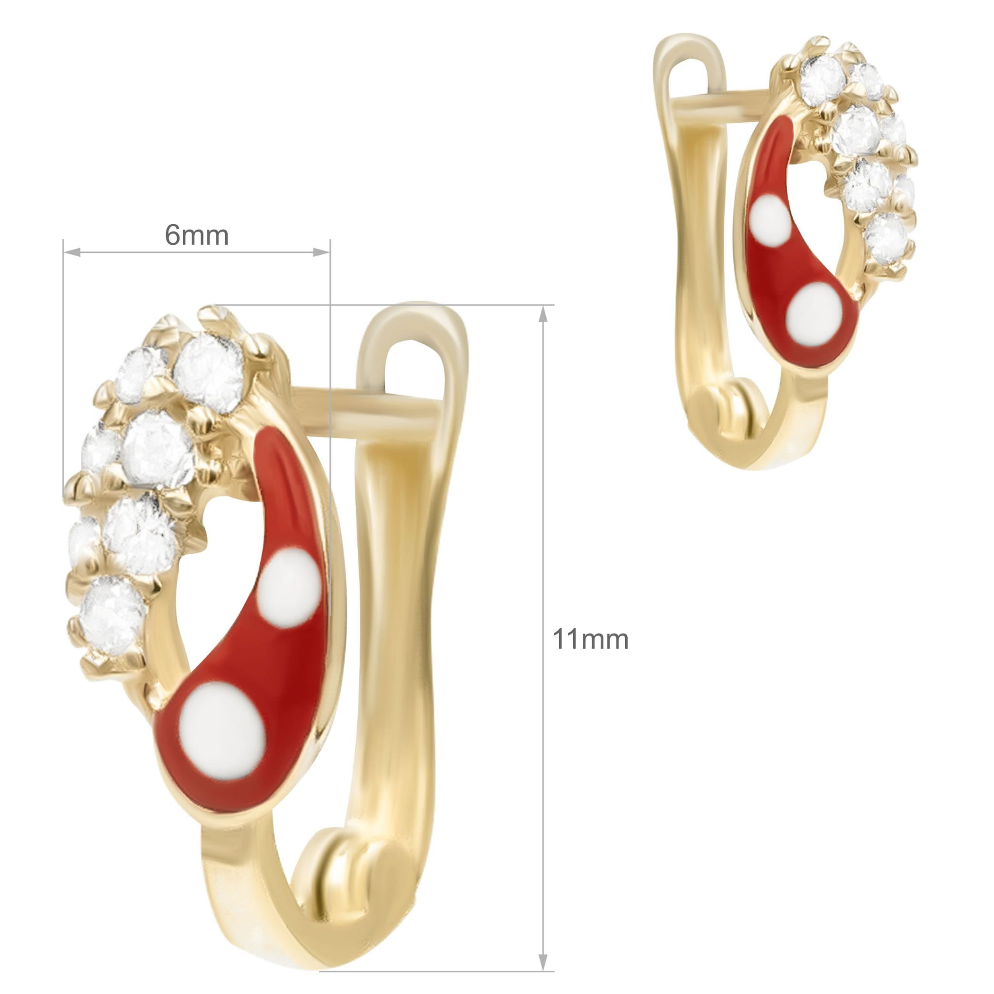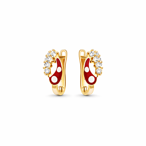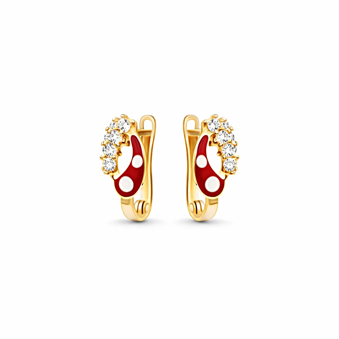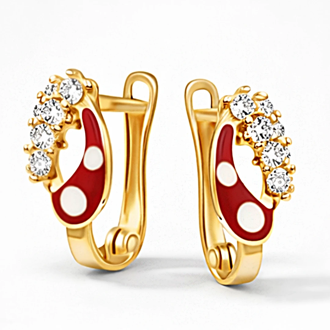 Złote Kolczyki z Czerwoną Emalią i Cyrkoniami