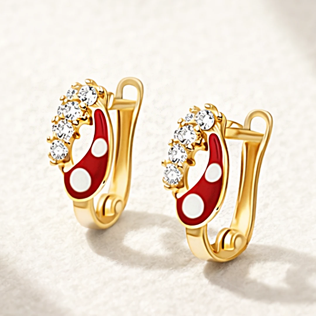 Złote Kolczyki z Czerwoną Emalią i Cyrkoniami – wyrazisty detal z subtelnym blaskiem